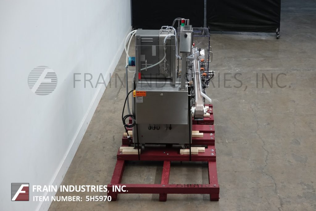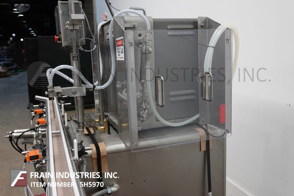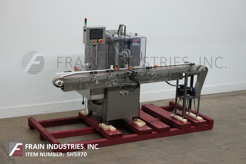 返回所有设备截线,模型DAB-16,2头内向活塞填料。每分钟12至60瓶瓶,填充范围为60毫升至520毫升,具有适当的变换零件 - 取决于材料,应用和机器配置。配备100“长3英寸”宽Delrin输送机,星形索引和(2)520cc Fus活塞。安装在带腿部腿部的基架上。