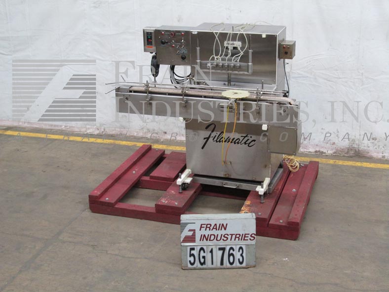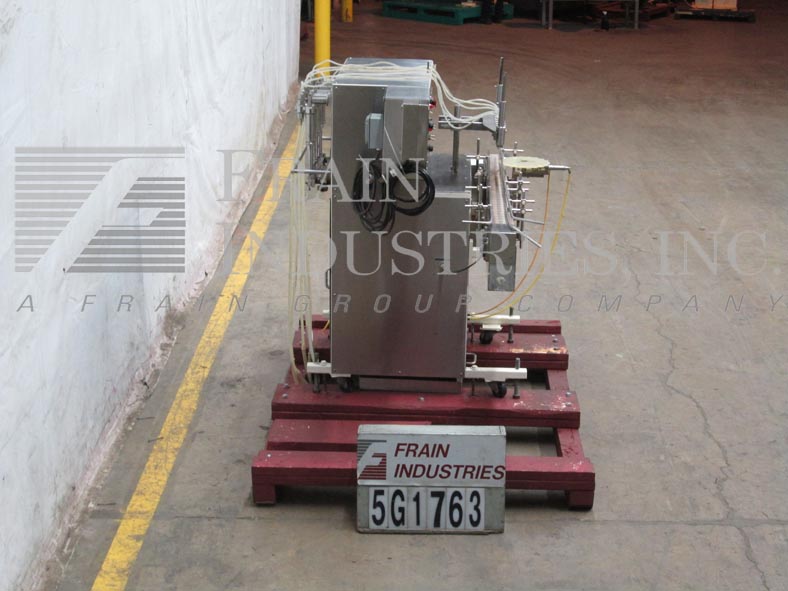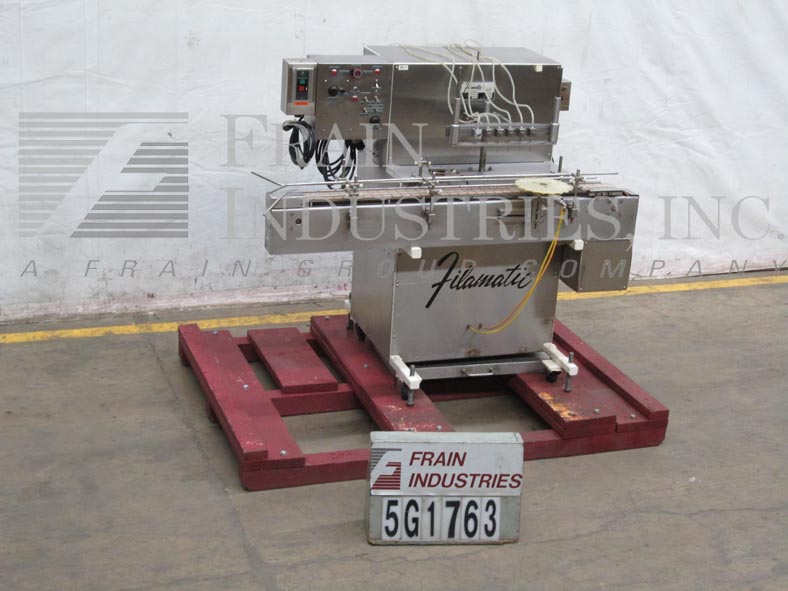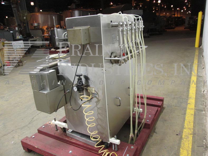 返回所有设备丝状型号AL200,内联(6)活塞填料额定从12到70瓶每分钟-取决于材料和应用。填充范围:3ml到130ml与适当的更换部件。配备(6)FUS-60活塞,53"长3-1/4"宽德龙输送机,星形轮分度,4.8mm OD/2.7mm ID喷嘴安装在15"长的可调滑杆与定心系统。控制面板有开/关主,填料,自动/ prime和输送开关与输送速度控制。安装有调平腿的脚轮。设计用于处理从水到轻油产品。