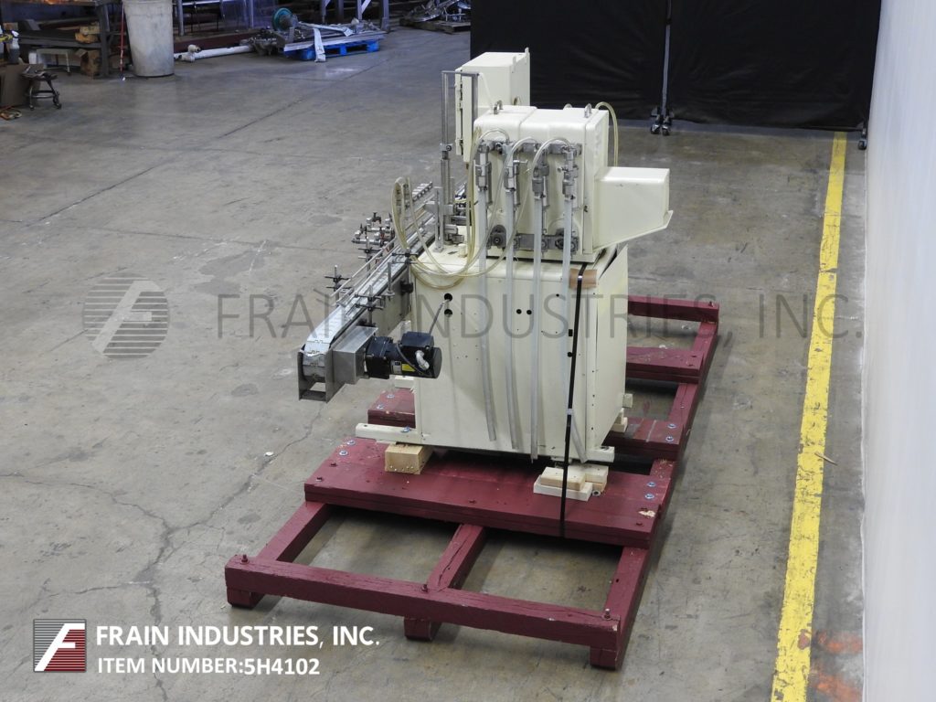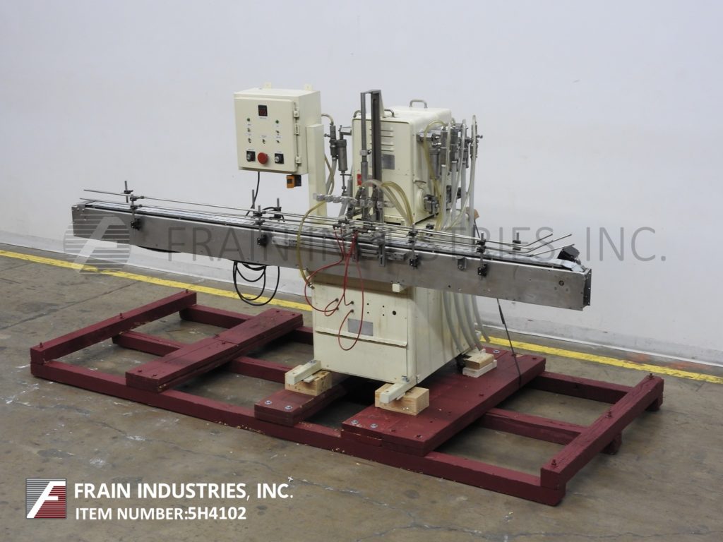 返回所有设备丝状,dab16 -4型,自动,内联,8头活塞填料。额定每分钟3到18次,容器数量取决于材料和应用。不锈钢螺杆接触部件。填充范围:60cc到520cc与适当的更换零件。配备3¼"宽x 112"长delrin集装箱输送机目前设置(8)FKS 130cc活塞填充精度±0.5%,气动门分度,(3/8)"外径潜水喷嘴和控制面板与开/关开关,每周期的行程选择和可变速度拨号。安装在重型基础框架。