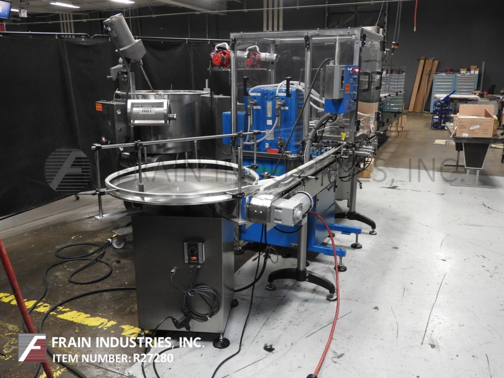 返回所有设备截面,模型DAB-16-4,自动4活塞填料。评分为3至18个循环每分钟,容器数量 - 取决于材料,应用和操作员灵活性。填充范围:60cc至520cc,具有适当的变换部件,配备(4)FUS 520CC活塞,填充精度为±0.5%,气动栅极分度,6½mmID潜水喷嘴和4½“宽X 112”长Delrin输送机。启动/停止按钮控制,连续/单周期开关和可变速度拨号。安装在重型基础框架上。适用于粘性,半粘性或自由流动的产品。