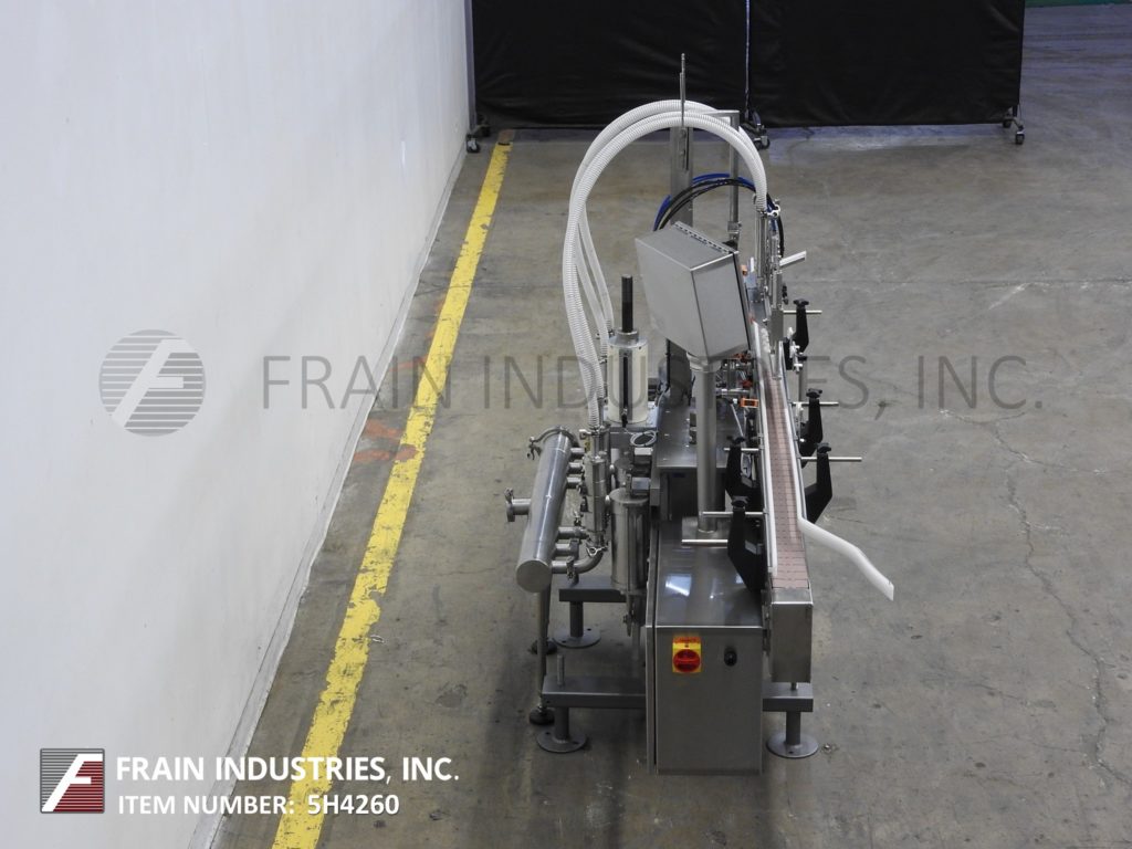 返回所有设备截线,模型VLD,4头内联活塞填料。每分钟12至60瓶瓶,填充范围为60毫升至520毫升,具有适当的变换零件 - 取决于材料,应用和机器配置。配备96英寸长的3英寸“宽Delrin输送机,星形索引,可调节导轨,(4)520cc活塞和(4)(5/8)”OD潜水喷嘴,其正切断安装在16英寸长的滑块上。控制面板具有欧姆龙PLC和按钮开始/停止/重置/ e-STOP控件。安装在带腿部腿部的基架上。
