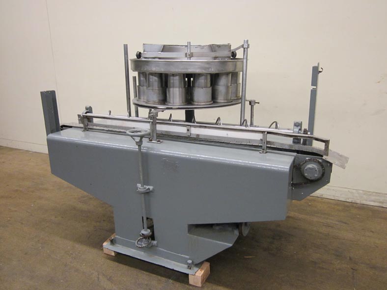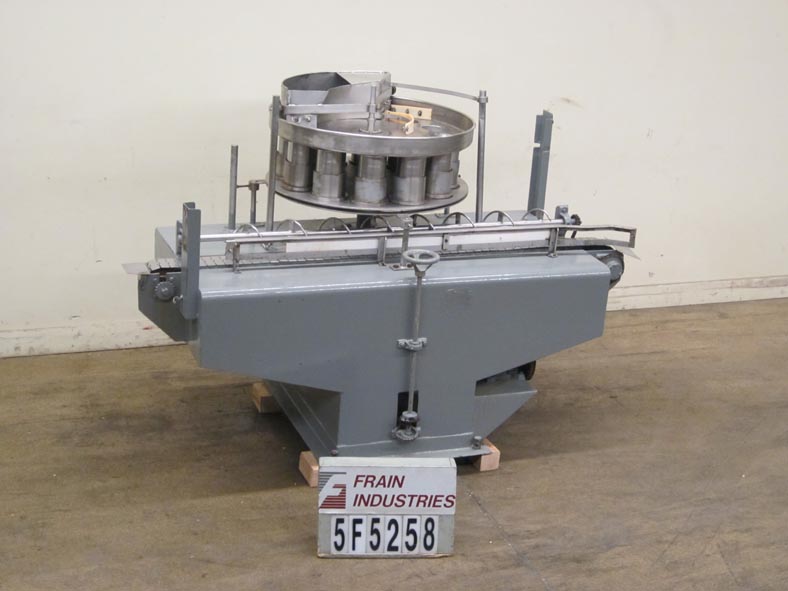 返回所有设备12个口袋旋转式,体积填料,每分钟容器数量 - 取决于材料和应用。在深度杯中的直径x 9-1 / 4“的直径x 9-1 / 4”的配备有8“中心,直径36”直径旋转圆盘,产品扫描刀片和漏斗。90“LONG X 4-1 / 2”宽不锈钢带式输送机,带蜗杆螺杆容器处理。安装在重型基础框架上。