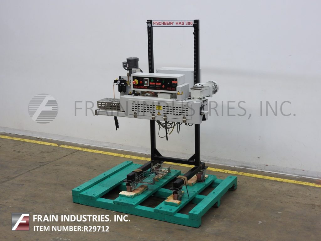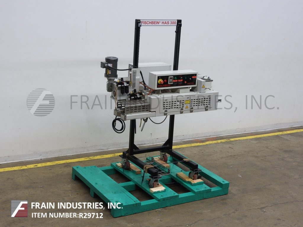 返回所有设备Fischbein,模型300,从左至右,热风封袋机从每分钟30至60英尺长与袋数目额定 - 取决于材料,应用和操作员灵巧。将运行大多数可热密封的枕头和角撑袋,10密耳最大气囊厚度和的6" 最小。配备48" 长双重压缩带密封部自由袋顶部。控制面板上有按钮启动/停止。热,辊张力和气压数字触摸垫控制。向上/向下开关和VFD速度控制。安装有脚轮动力高度可调节的底座上。