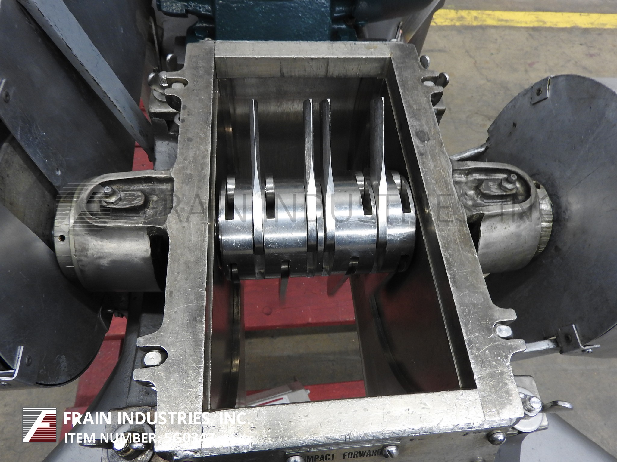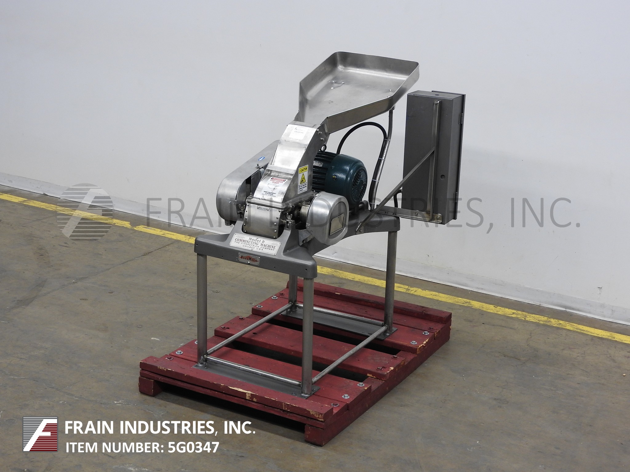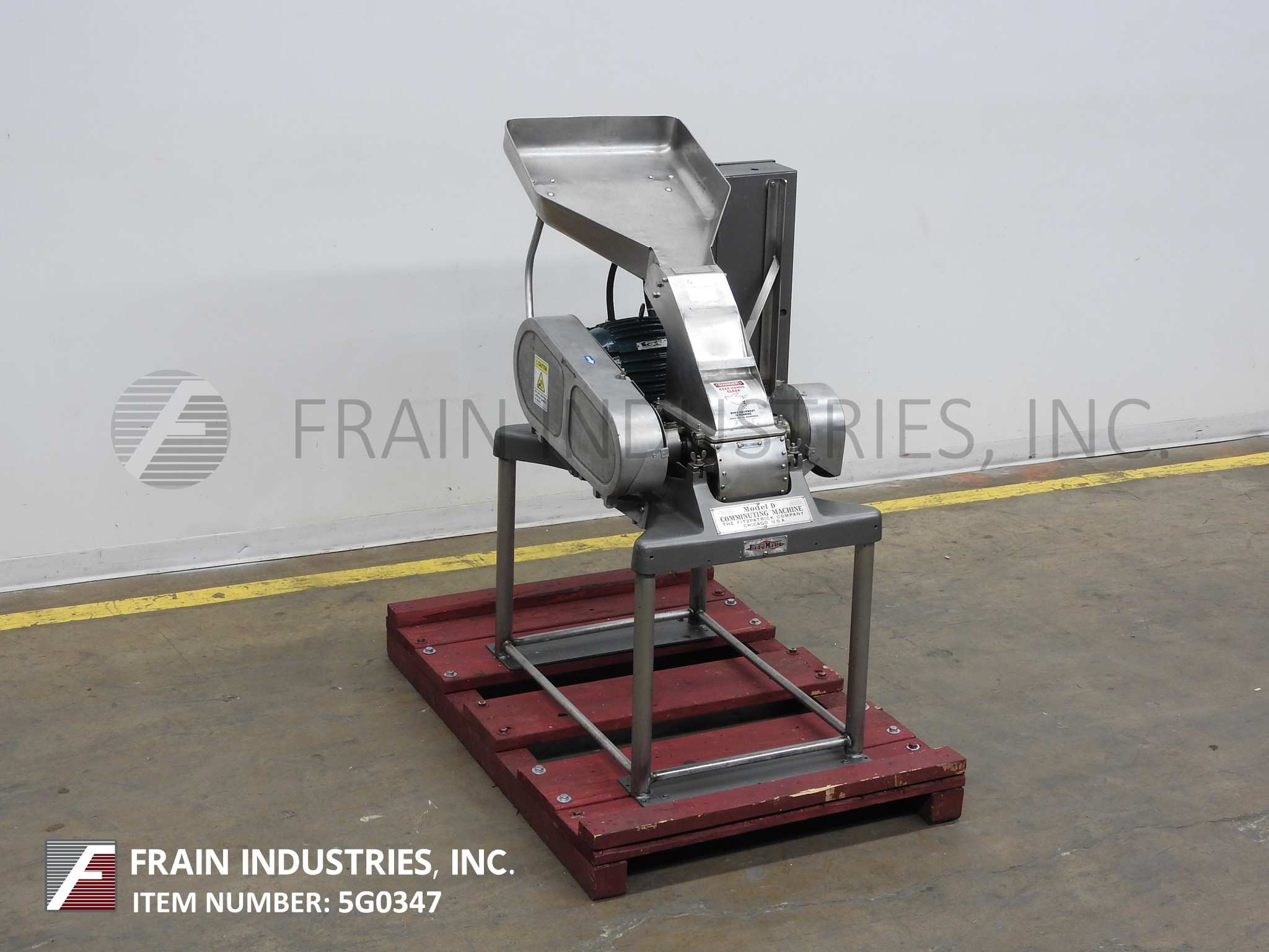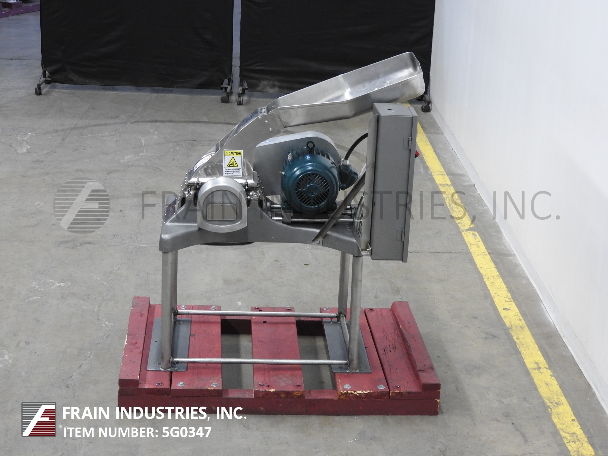 返回所有设备不锈钢锤式粉碎机专为各种类型的产品削减-数量和操作速度取决于材料和应用。配备24"L x 18"W不锈钢进料锅与6" x 4"产品端口和6" x 11"减少喉管。16个摆刀/冲击刀片,螺栓下的安全盖,屏幕面积6“宽× 24”长5“宽× 9”长底部产品放电与36“地板间隙,按钮启动/停止和5马力电机驱动。安装在脚轮上便于移动。