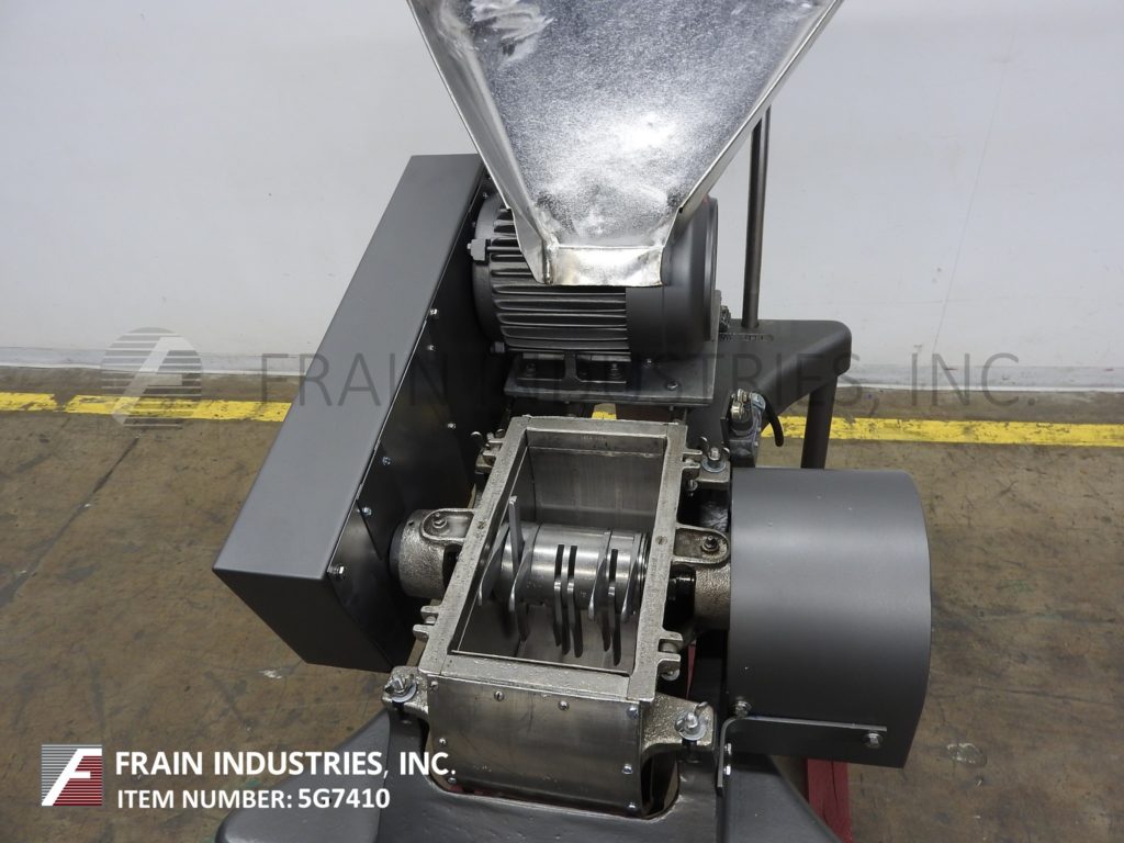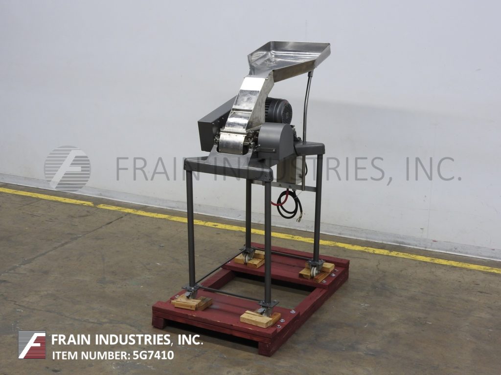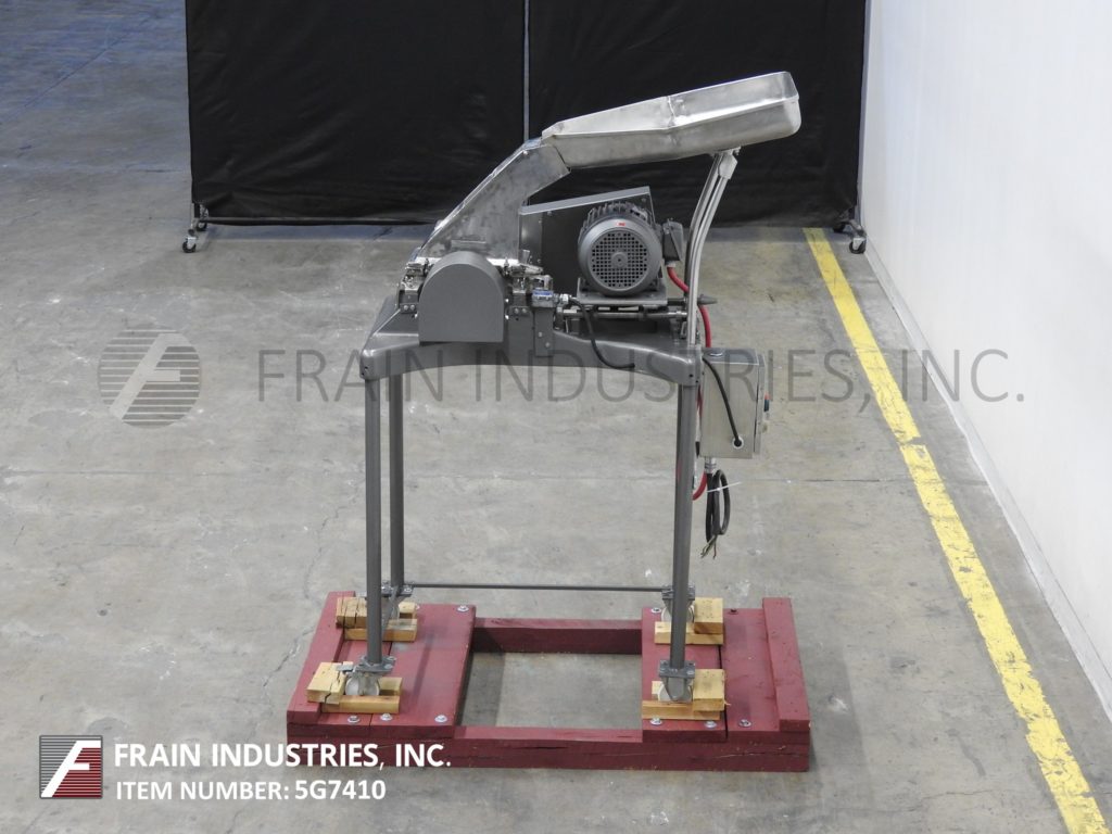 返回所有设备菲茨米尔,型号D6,粉碎机与不锈钢接触部件。每小时的生产速度-视材料和应用而定。配备20“宽× 26”长× 4“深进料盘,6½“宽× 4”高进料喉部,6“长× 11½”宽刀片腔和(16)1“宽× 4”长的摆动刀/冲击刀片,由3马力驱动。产品放电是10 "长x 5½"宽38 "地板净空。安装在带有脚轮的(4)腿低碳钢底座框架上。用于研磨,除块,粉碎和处理湿/干产品。