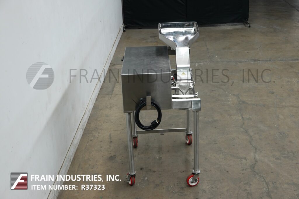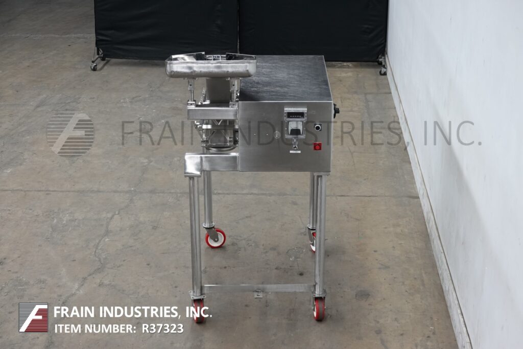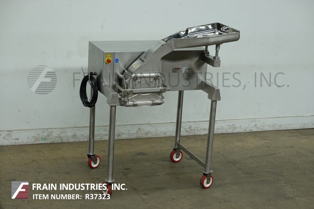 Back to All EquipmentFitzmill, Model D6A, 316 Stainless steel, comminutor mill with production rates per hour – depending on materials, application and operator dexterity. Equipped with 20" wide x 26" long x 4" deep feed pan, 10" wide x 6" high feed throat, 12” long x 6” wide blade chamber and (16) fixed knife / impact blades powered by 5 hp drive. 12” long x 6" wide product discharge with 38” floor clearance. Mounted (4) leg stainless steel frame with casters.