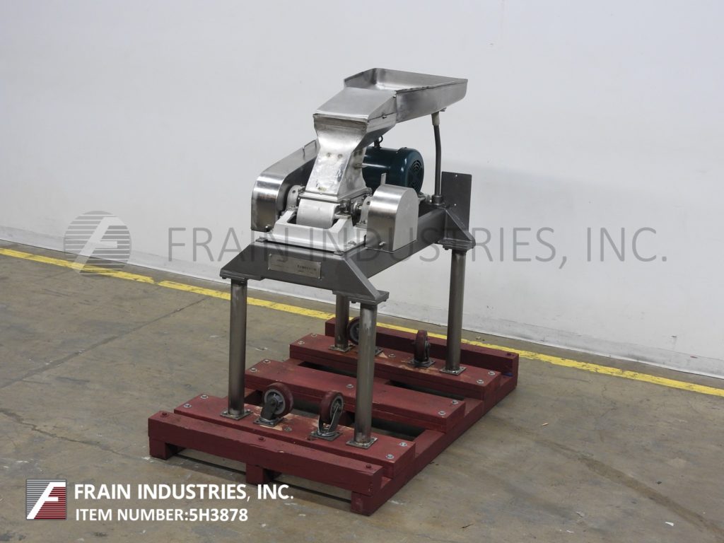 返回所有设备菲茨米尔,型号DASO6,不锈钢锤式磨机每小时的生产速度-取决于材料,应用和机器配置。配备一个24英寸长x 20英寸宽x 4英寸深的进料盘,6英寸宽x 4英寸高的进料喉部,11英寸长x 6英寸宽的刀片腔和(16)固定刀/冲击刀片由7½Hp电机驱动。产品泄放长度为15½" x 5¾"宽,地面间隙为36 "。启动/停止控制,安装在4个带脚轮的腿上。