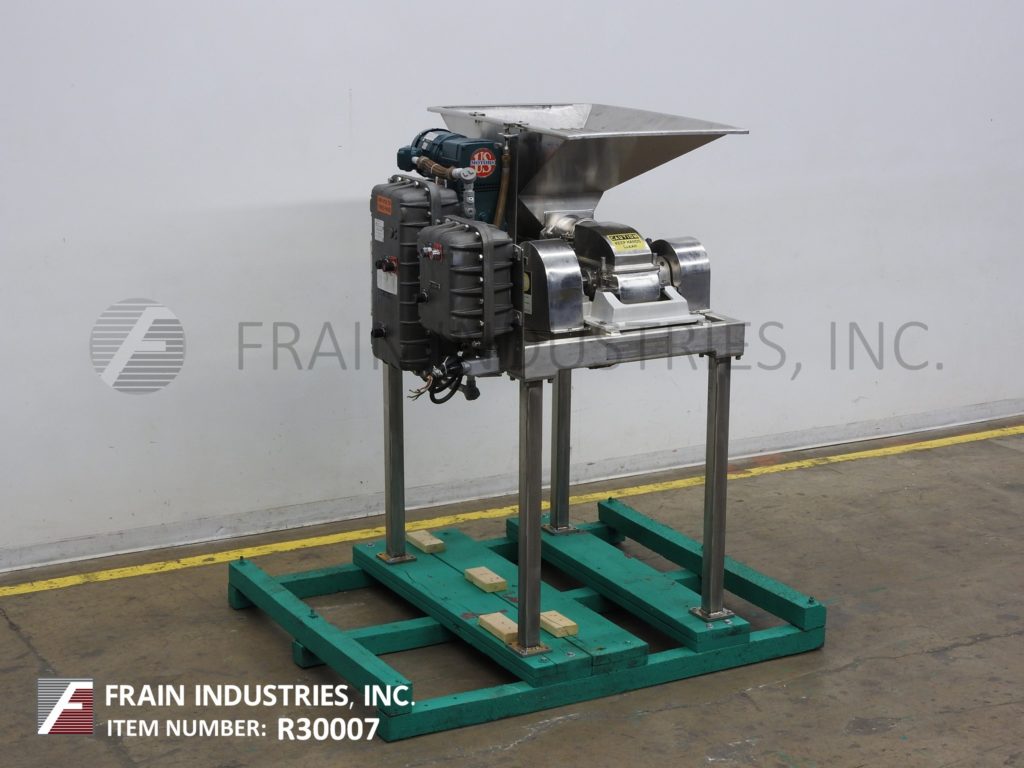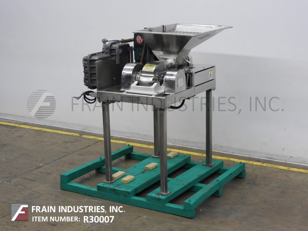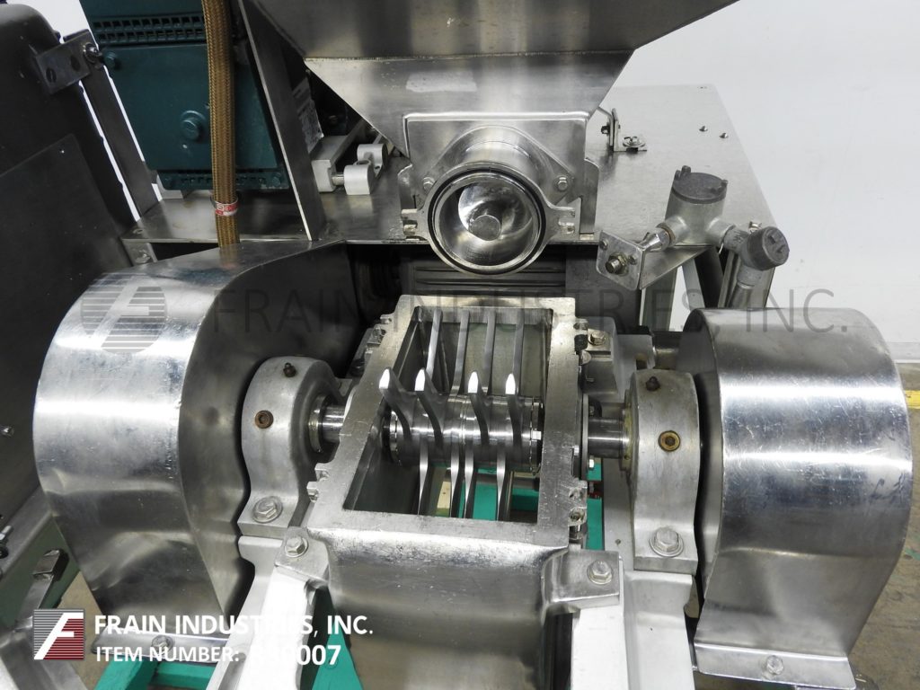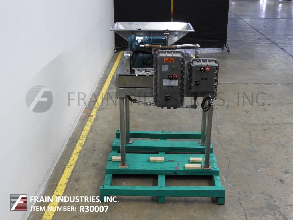 变速,螺旋进料,S/S锤式粉碎机与30" x 40"料斗。配备直径4英寸的饲料螺旋与安全篦。225型固定式刀片假定一侧有刀,另一侧有冲击。单位用脚轮坐在S/S基座上。外径:53"高x 65"长x 49"宽