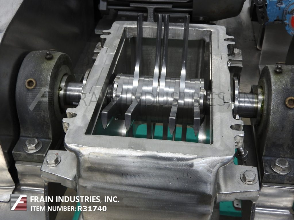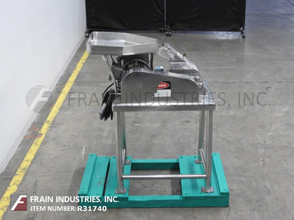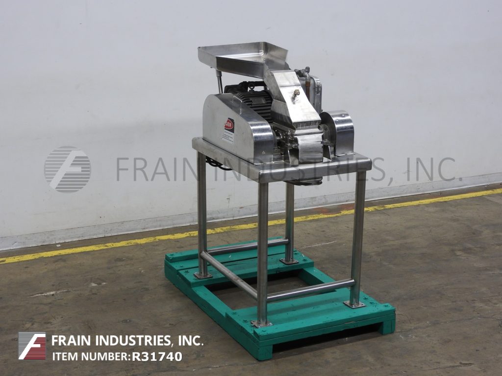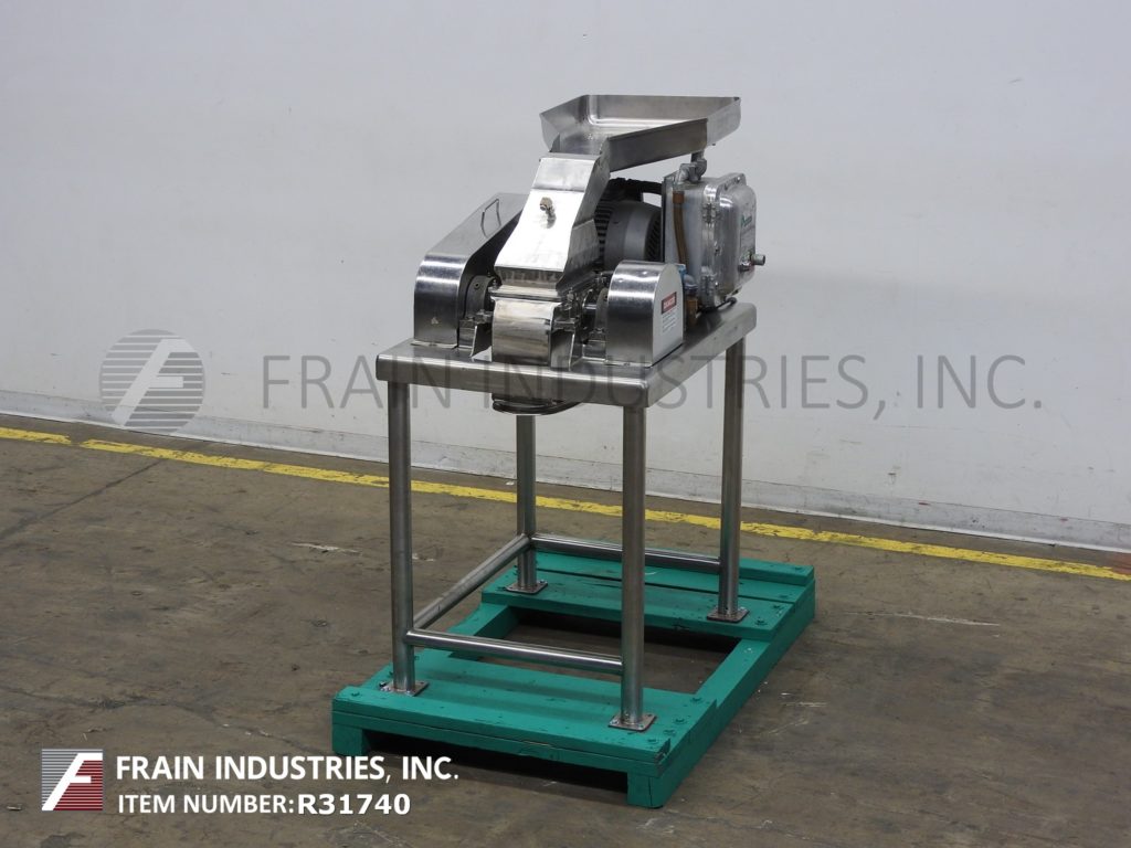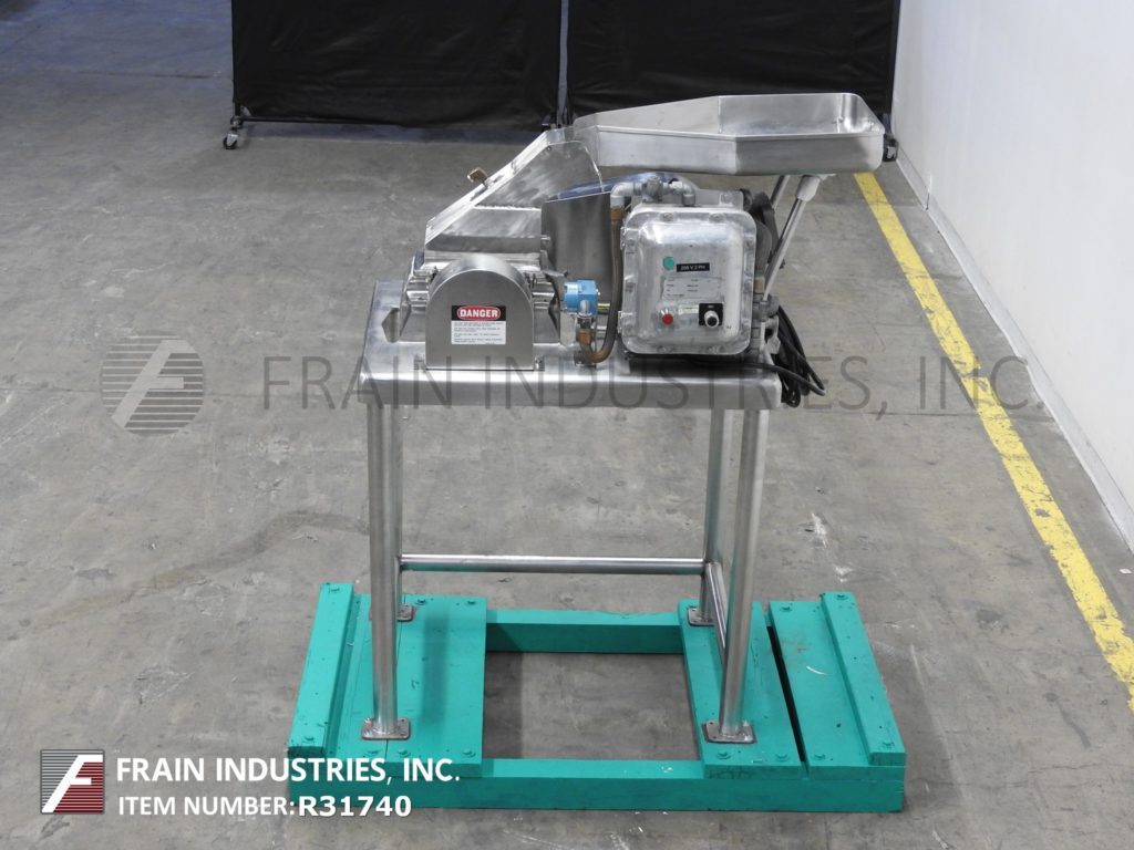 返回所有设备菲茨米尔,型号DASO6,不锈钢锤式磨机每小时的生产速度-取决于材料,应用和机器配置。配备24“长× 16”宽× 4“深饲料盘和6“× 6”饲料喉部(16)固定刀/冲击刀片由7.5马力电机驱动。15 "长x 6 "宽产品排放32 "地板间隙。控制面板有启动,停止,复位按钮控制。安装在(4)支腿不锈钢框架上。