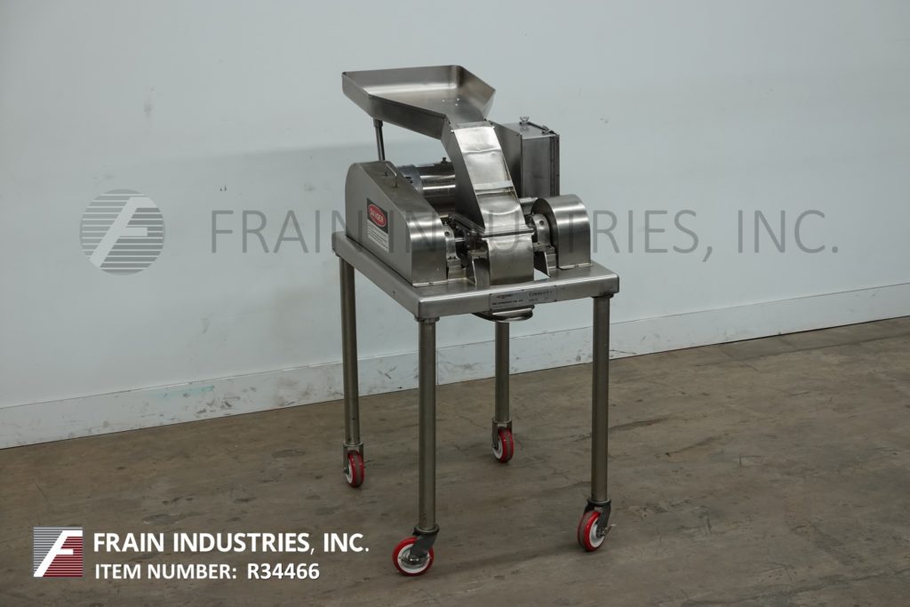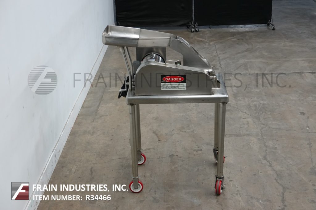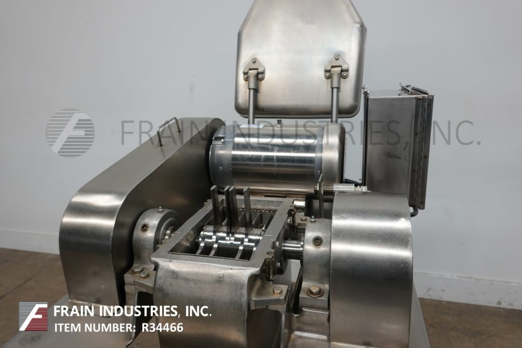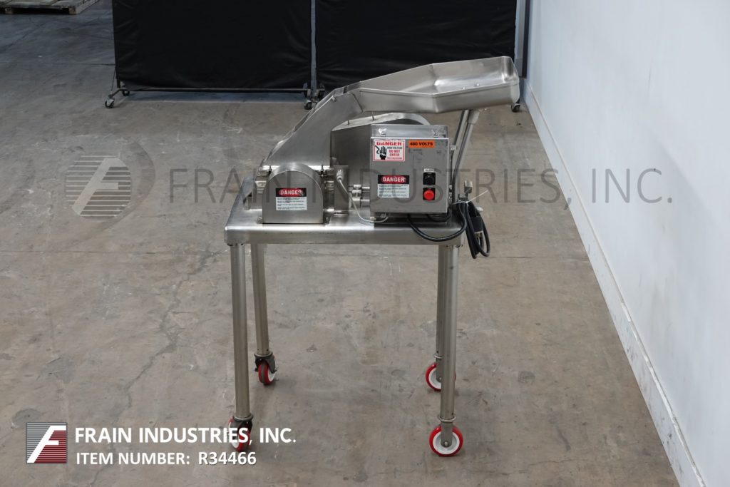 FITZMILL,型号DAS06,不锈钢锤磨机,每小时生产率 - 取决于材料,应用和机器配置。配备26“长x 20”宽x 4“深饲料盘,6”宽x 4“高进料喉部和(16)固定刀/冲击刀片,由7½HP电机驱动器供电。产品放电是15½”长x5½“宽36“落地间隙。开始/停止和电子停止控制。安装在不锈钢(4)腿架上。