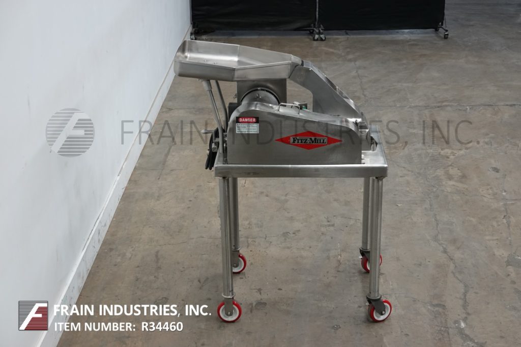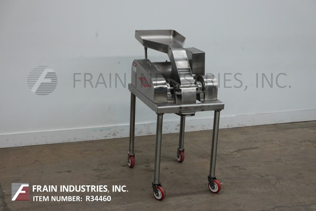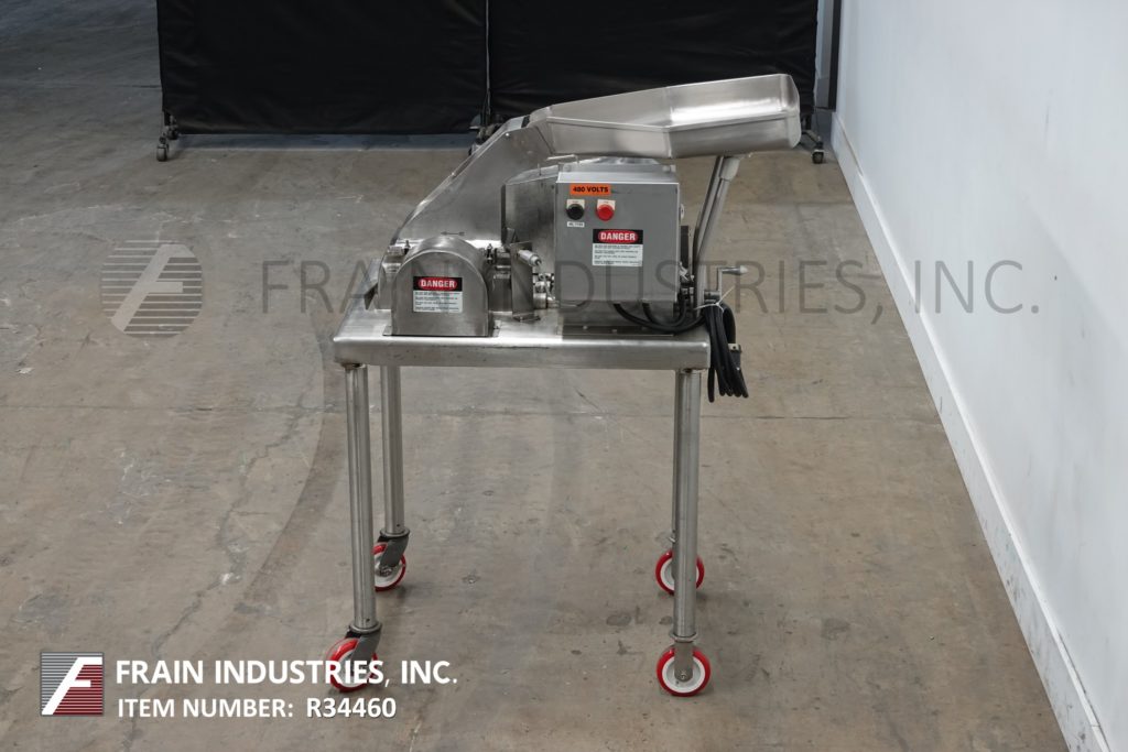 返回所有设备菲茨米尔,型号DAS06,不锈钢锤式磨机,每小时的生产速度取决于材料,应用和机器配置。配备26"长x 20"宽x 4"深进料盘,6"宽x 4"高进料喉部和(16)固定刀/冲击刀片,由7½Hp电机驱动。产品排放是15½“长x 5½”宽36“地板净空。具有启动/停止和e-stop控制。安装在不锈钢(4)腿架上。