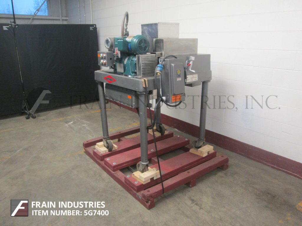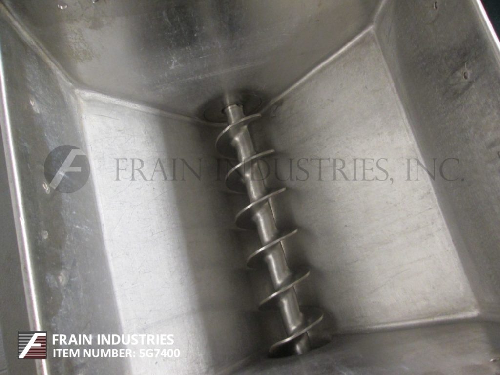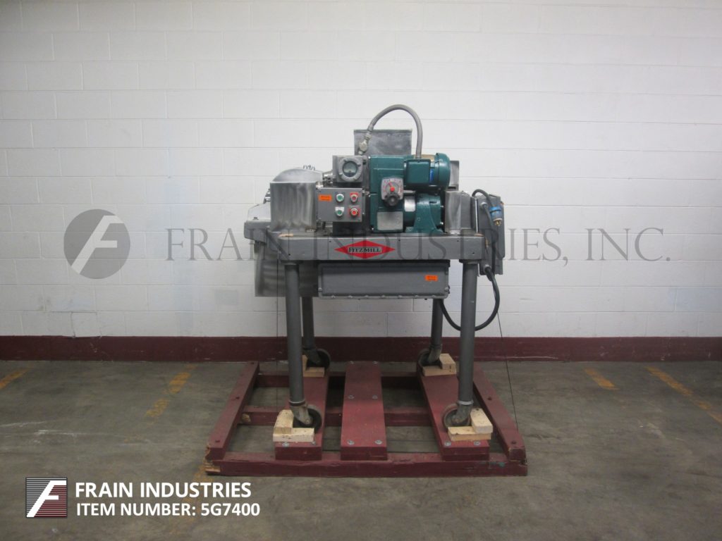 回到所有设备FITZMILL,型号D,不锈钢锤磨机。配备12英寸长x 12“宽x 12”深(½ft³)产品料斗,3“直径饲料螺钉,2”中心由¼HP驱动器提供动力,具有变速齿轮箱和(16)3½“长x 1”宽固定刀/冲击刀片。产品放电是15“L x5½”W,具有36英寸的地间隙。安装在(4)腿部温和的钢框架上,带脚轮。