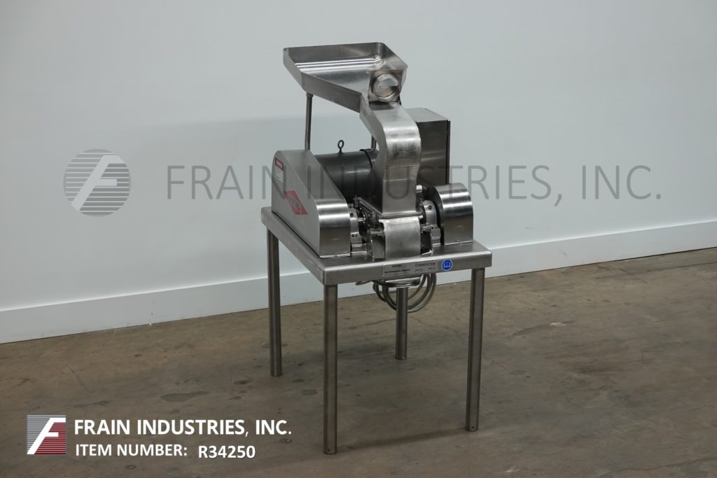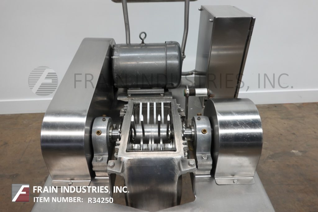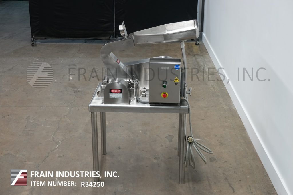 返回所有设备菲茨米尔,DASO6型,不锈钢锤式粉碎机,每小时的生产速度取决于材料,应用和机器配置。配备26"长x 20"宽x 4"深进给盘,6"宽x 4"高进给喉部和(16)固定刀/冲击刀片由7½马力电机驱动。产品出口是15“长x 5¾”宽与29“地板间隙。安装在(4)腿架上。