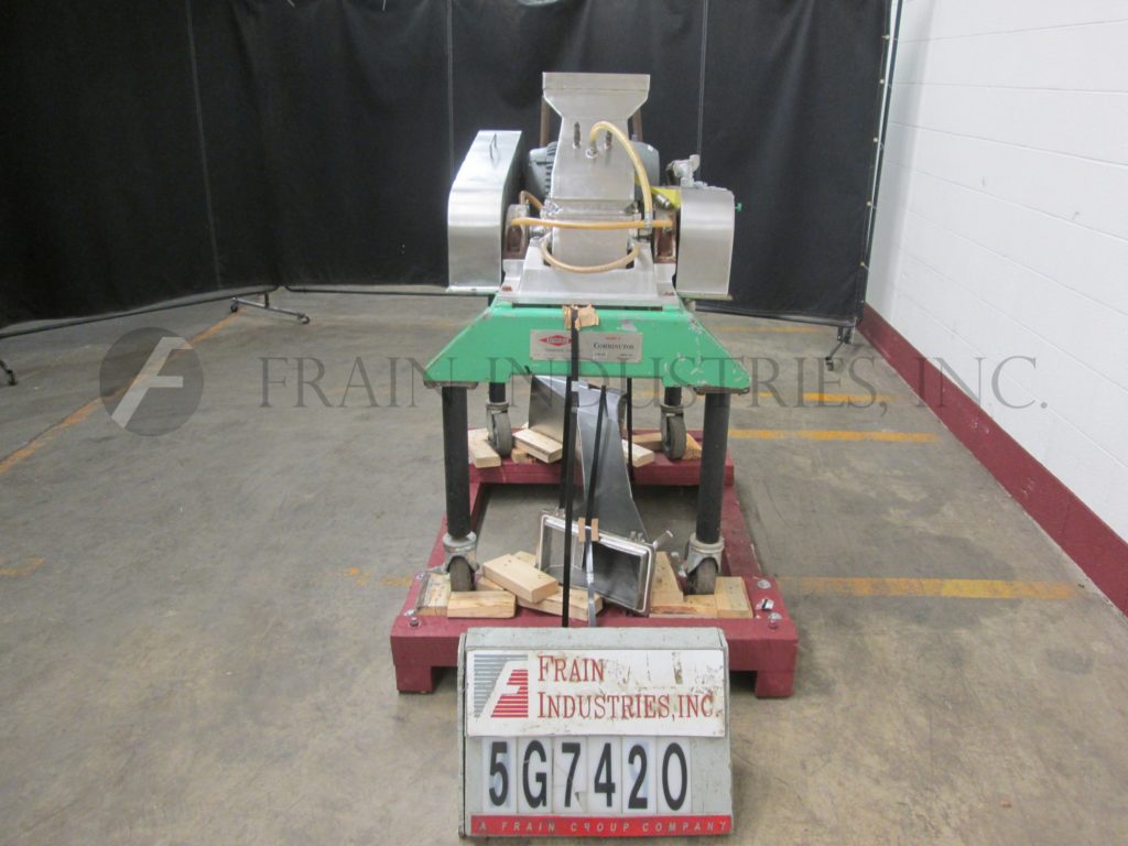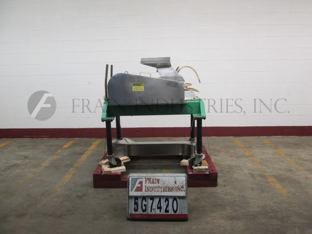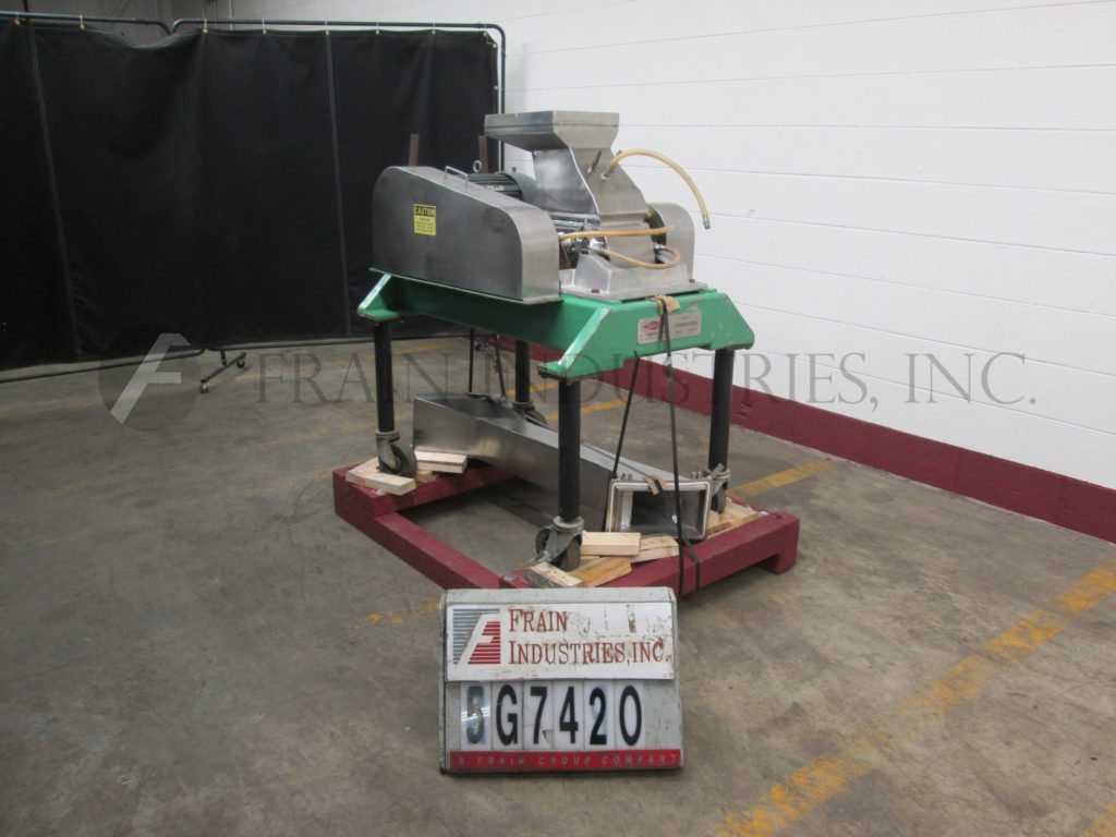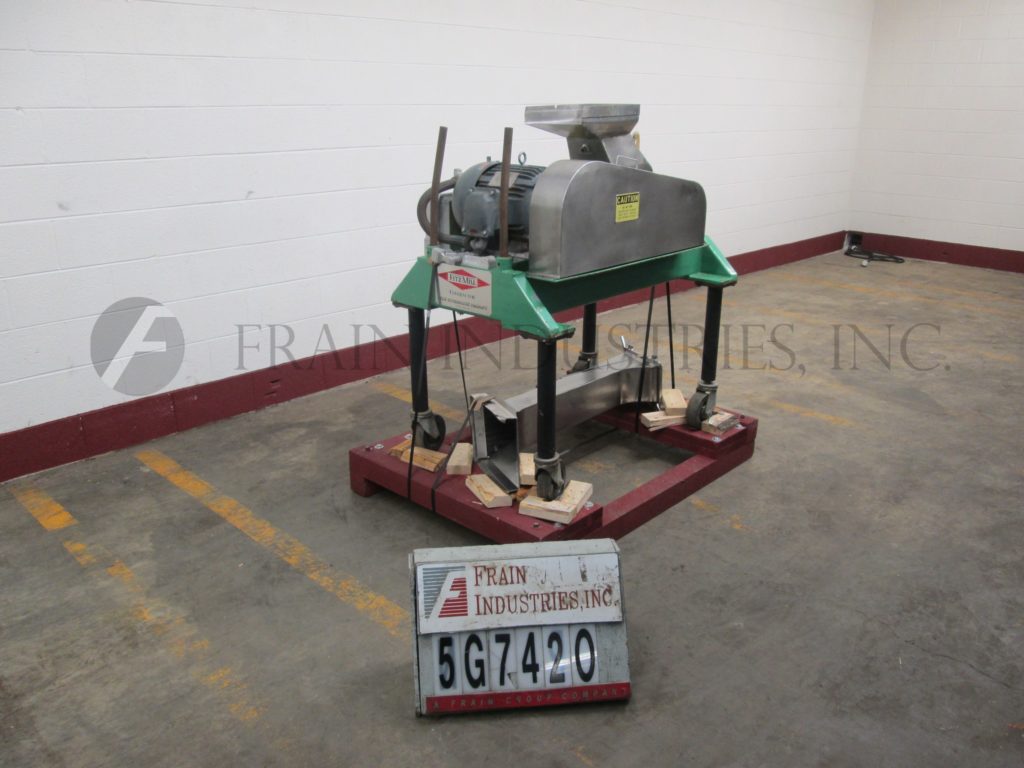 返回所有设备Fitzmill,DAS06型磨机,带不锈钢接触件。配备6“宽x 5”高进料喉、11“长x 6”宽夹套腔室和(16)1“宽x 4”长固定刀片/冲击刀片,由10 hp驱动器驱动。产品排放口长15英寸,宽5½英寸,净空26英寸。安装(4)支腿低碳钢基架,带脚轮。生产率取决于材料、应用和机器配置。