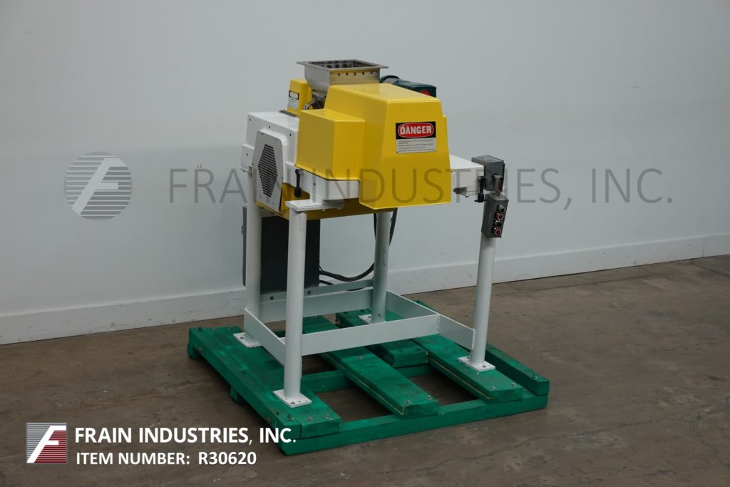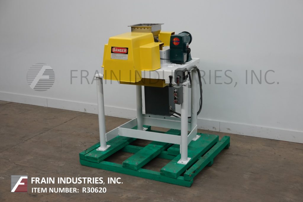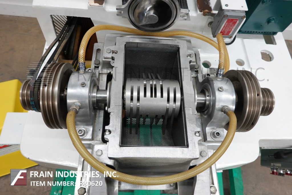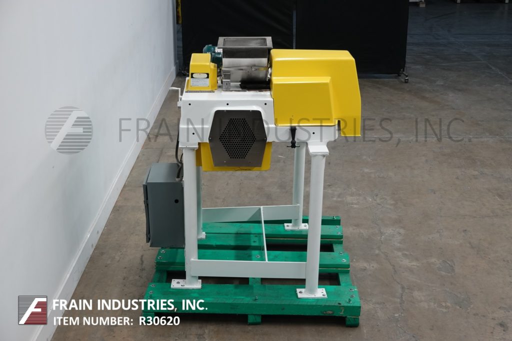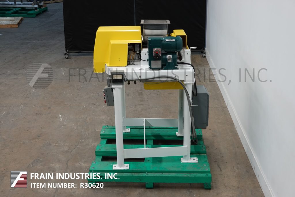 返回所有设备菲茨米尔,DASO6型,不锈钢锤磨机。配备了一个12“长× 12”宽× 12“D(½英尺³)的产品料斗,4”直径的进料螺杆由一个1马力驱动的变速齿轮箱和(16)4“长× 1”W摆动冲击叶片由一个10马力驱动。产品卸货是15“L x 5½”W与45“地间隙。