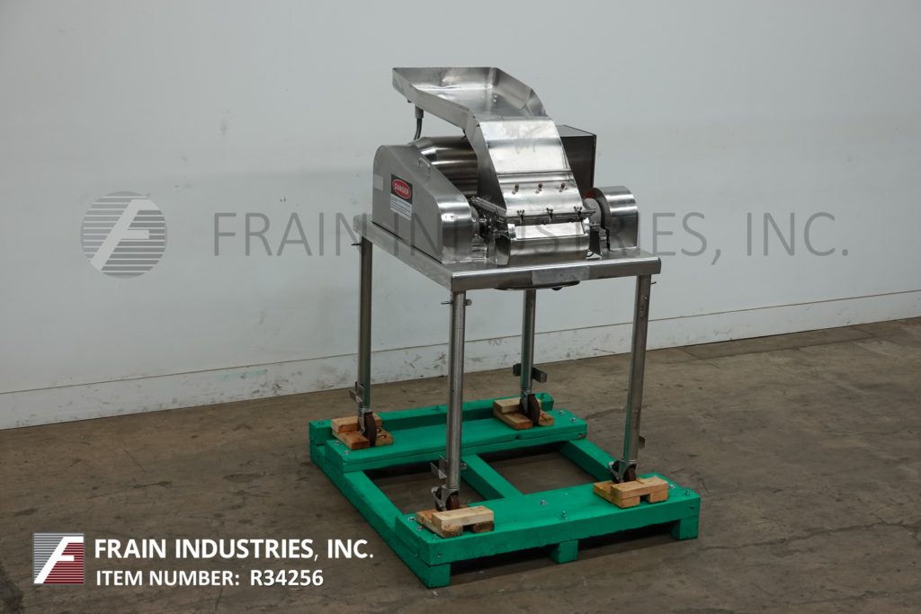 返回所有设备FITZMILL,型号DKASO12,不锈钢锤磨机,每小时生产率 - 取决于材料,应用和机器配置。配备28“长x 21”宽x 4“深饲料盘,13英寸宽x 4”高进料喉部和(32)固定刀/冲击刀片供电,由15个HP电机驱动器提供动力。产品放电是13“长x 10”宽37“楼层间隙。安装在(4)腿架上与脚轮。