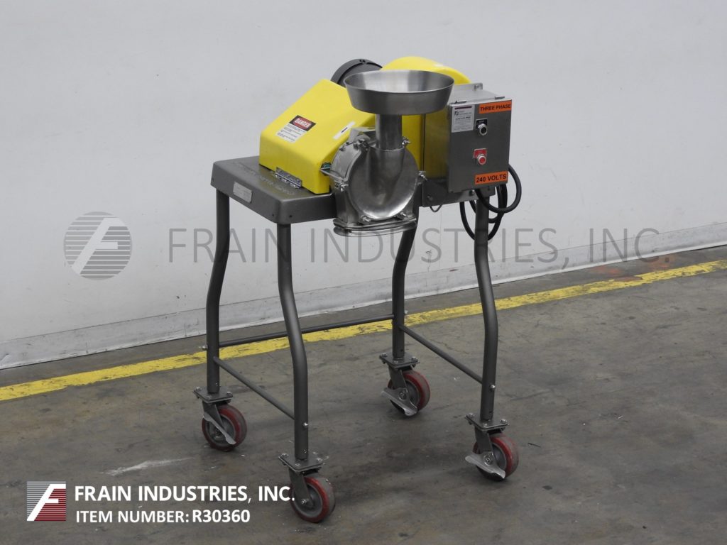 返回所有设备FITZPATRICK,型号JT,316不锈钢主体磨机。每分钟生产率 - 取决于材料和应用。配备12个“ID x 3”深304不锈钢进料平底锅,带2.75“ID产品端口,(12)摆动刀/冲击刀片,屏幕面积为2英寸宽x 16”长8“长x 2”宽底产品排放35“地间隙。按下按钮开始/停止控制并安装在带锁定脚轮的底座上。