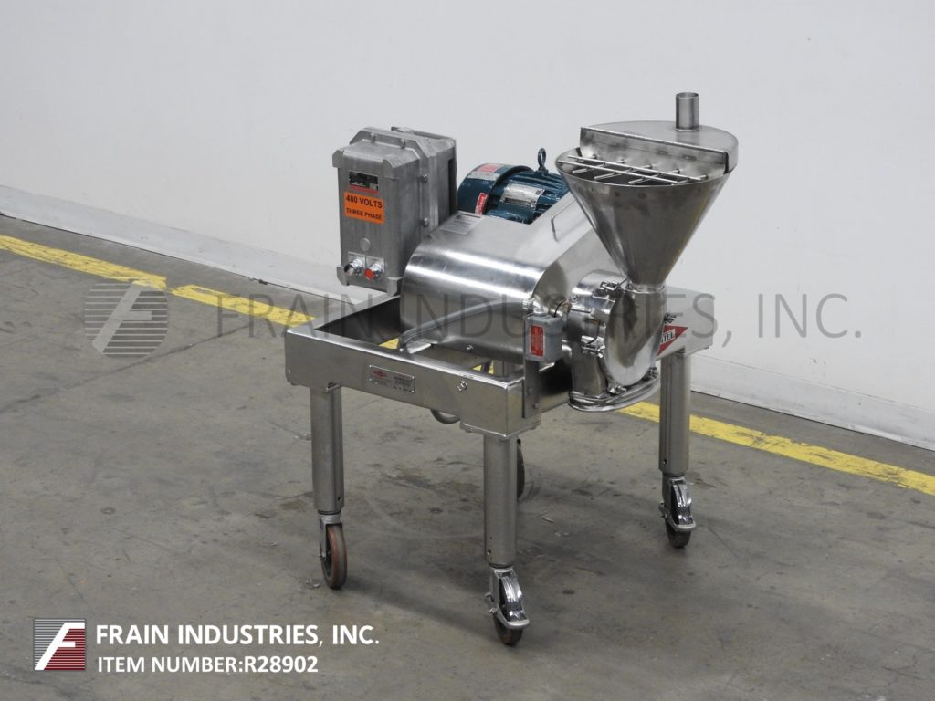 返回所有设备FITZPATRICK,型号JT,不锈钢主体磨机。每分钟生产率 - 取决于材料,应用和机器配置。配备15“直径X 10”深馈电料斗,3“直径馈送喉部,(15)固定刀片和10”长×6“宽底产品放电,21”接地间隙。按钮开始/停止控制。安装在不锈钢基架与脚轮。