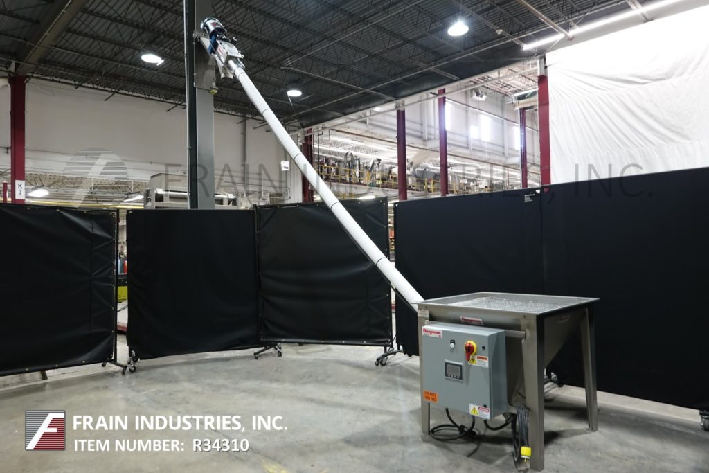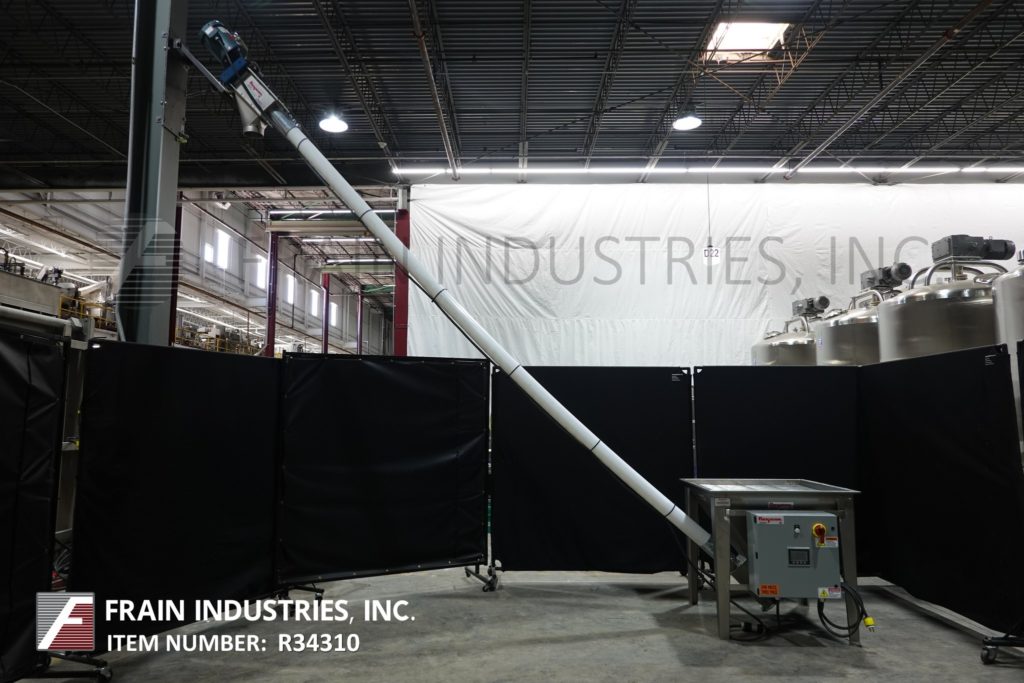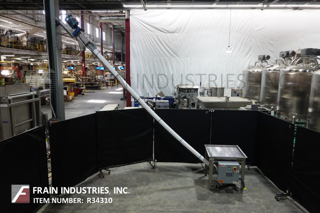 返回所有设备Flexicon,型号1450,每小时可输送高达140立方英尺的产品,具体取决于材料、应用和产品密度。配有36“长x 36“宽x 27“深不锈钢搅拌产品带盖料斗和½惠普搅拌器驱动,并安装在(4)腿,3“OD x 151“长不锈钢产品螺旋输送机、4”OD x 120“长flexable聚管和顶部安装3马力马达驱动6“ID产品卸货港控制面板启动,停止,紧急停止控制。