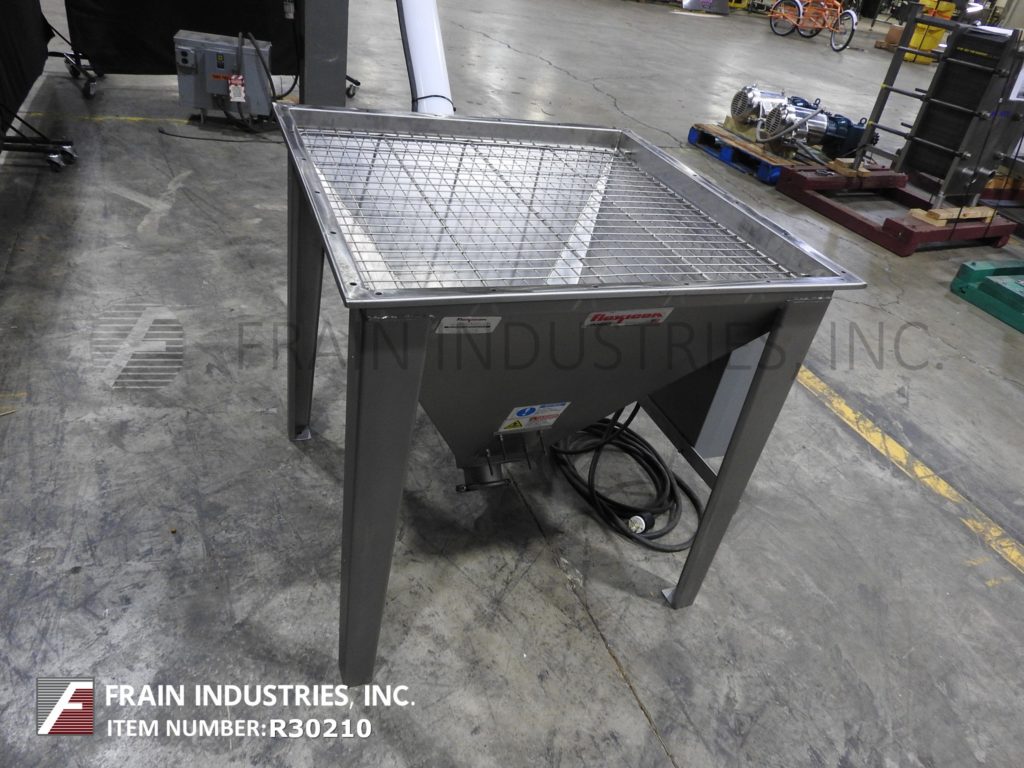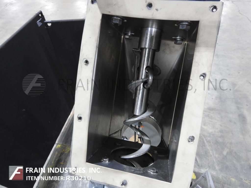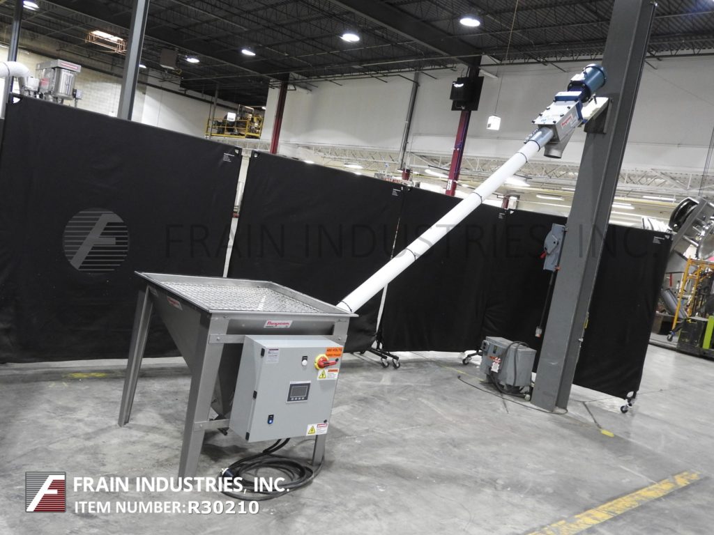 返回所有设备Flexicon,型号1450,4“直径x 120”长螺旋输送机。根据材料、应用和产品密度的不同,每小时可输送高达140立方英尺的产品。配备一个36 "长x 36 "宽x 27 "深的产品料斗与格栅盖,3"直径x 151"长不锈钢产品输送螺杆,4"直径x 120"长柔性聚管,顶部3马力电机驱动6 "内径产品出料口。