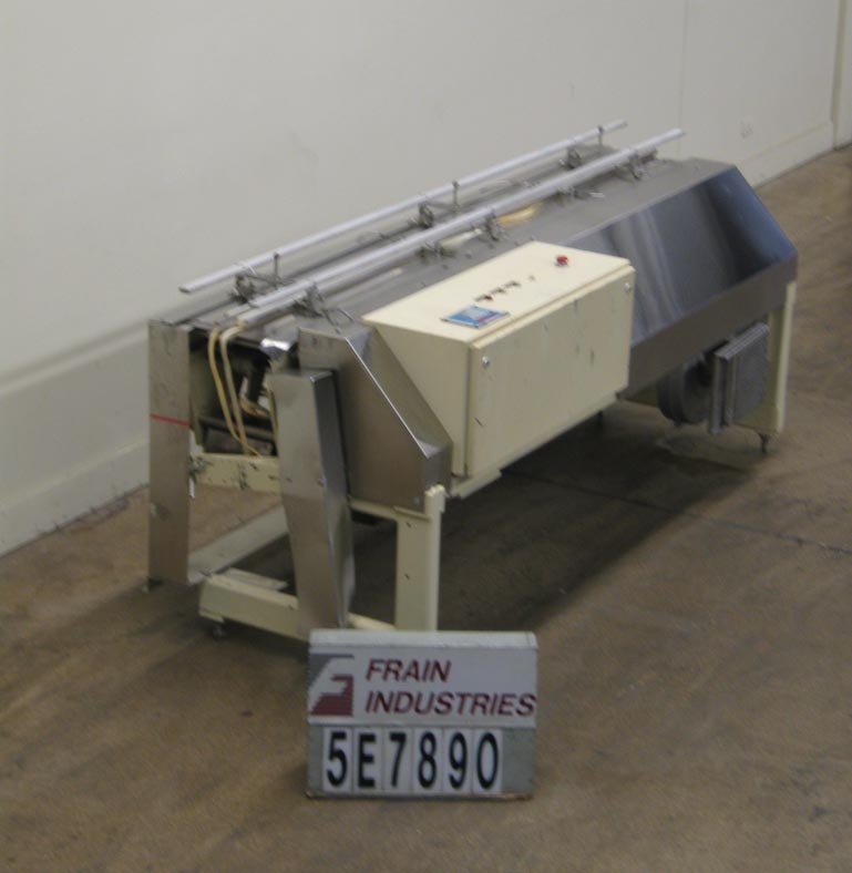 返回所有设备FMC空气输送机,94“L x 11”W,空气输送机进料,最后与FMC WM18包装器一起使用,将预包装的产品送入万用箱包装。单位有1/4马力驱动和鼓风机,可调节高度和宽度的导轨,变速控制,和一个触摸屏控制器与LED显示。安装在公共基础框架(4)高度可调腿。