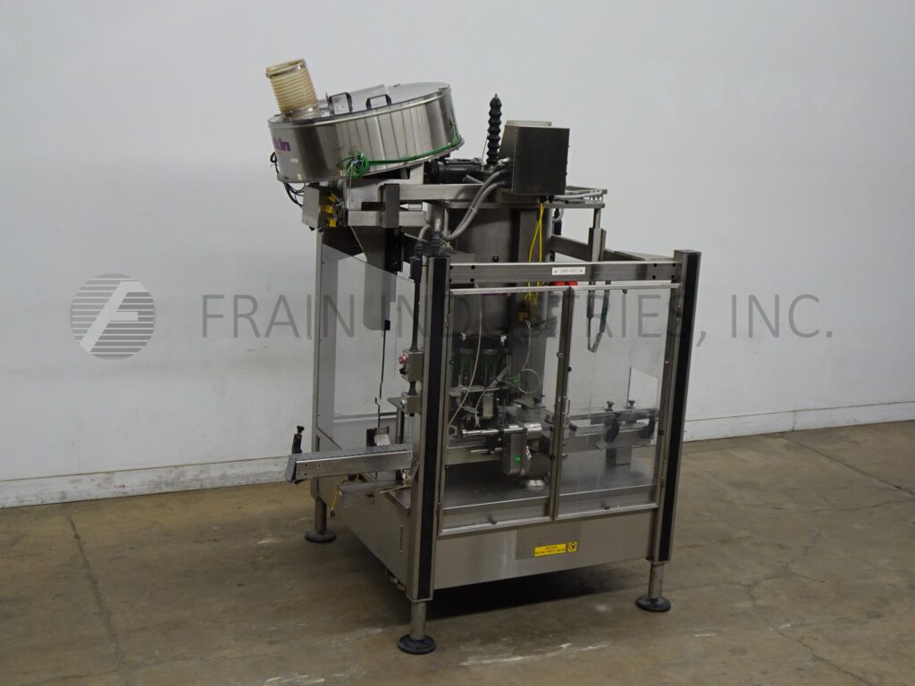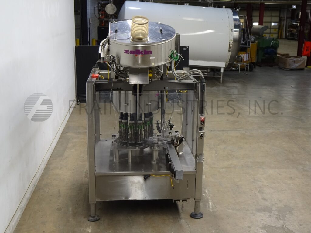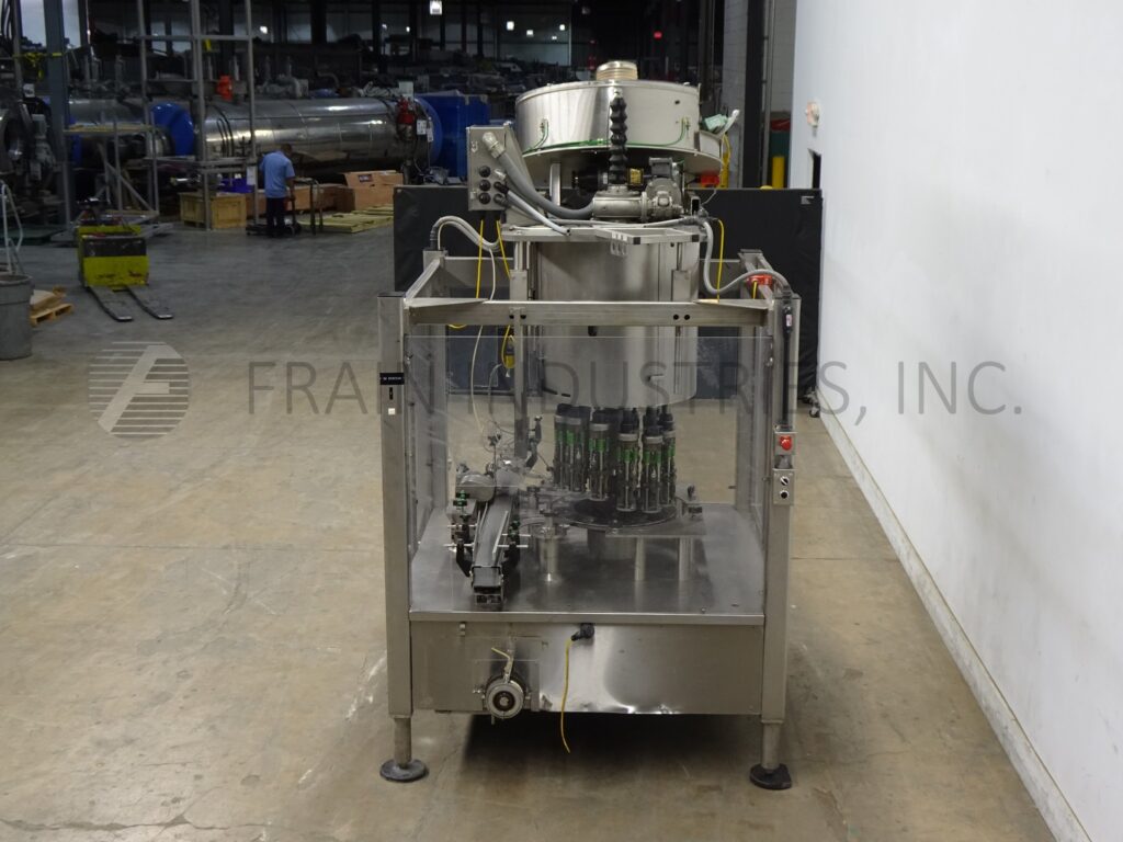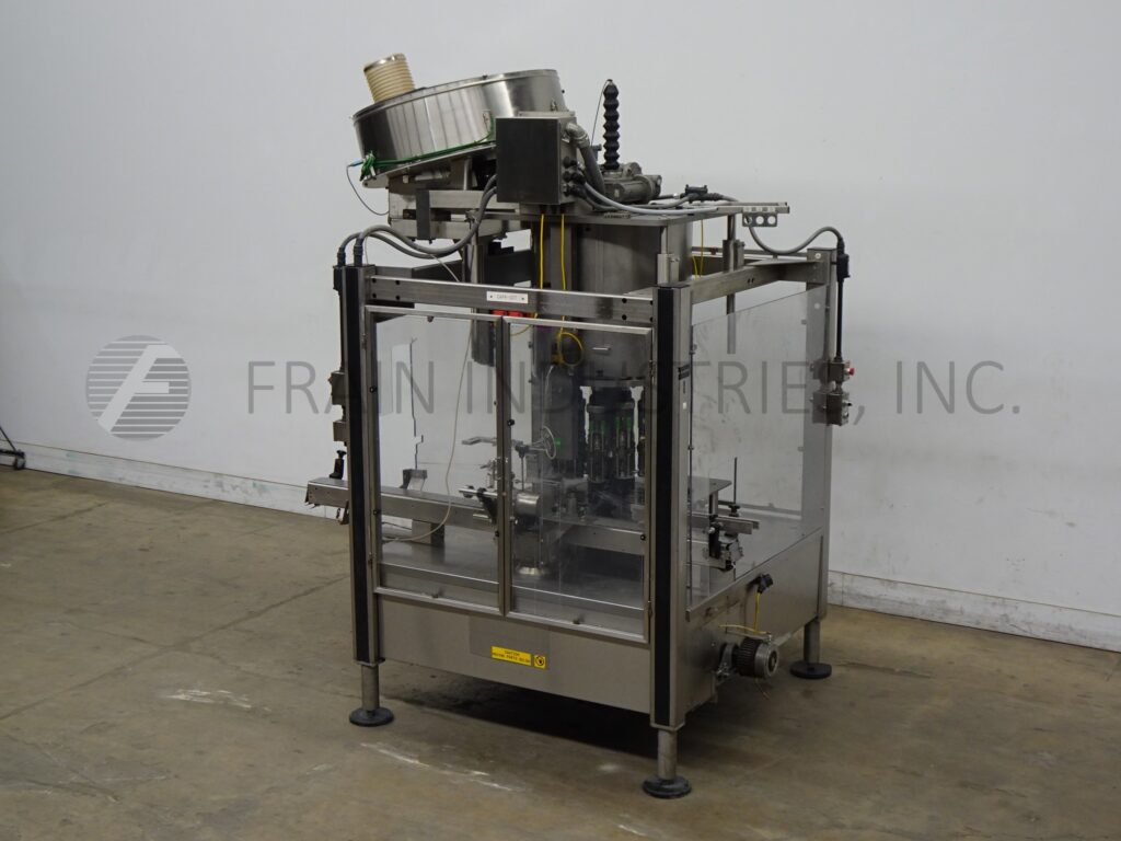 回所有设备Fowler/Zalkin模型CA12/480自动12头、旋转式不锈钢Servo驱动机、ROPP封装机,每分钟装箱数和帽-视材料应用而定Cap和容器大小装有36直径x12深排序碗 84'长x3152'宽塑料Delrin容器传送器填充并卸载高度螺旋顶头置51⁄2中心缺失帽和容器检测并启动、停止和e-stop按按钮控件挂在不锈钢架上并加环锁安全卫士