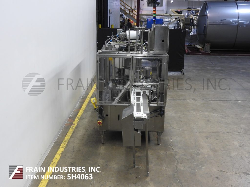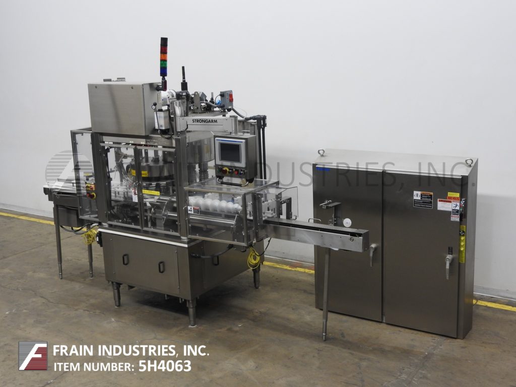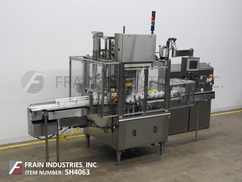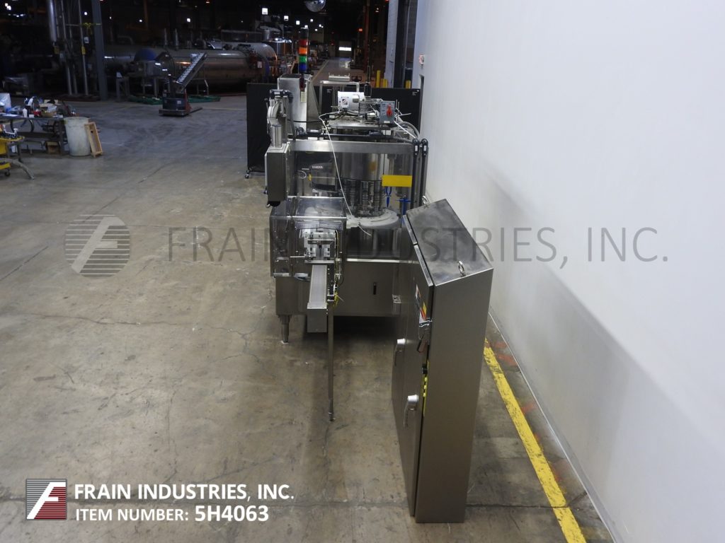 返回所有设备Fowler型CAPDF-9/360,自动,从右到左,(9)头旋转,不锈钢,推上盖器设计运行插入式和推上式盖每分钟从9到325个容器的速率-取决于材料和应用。瓶盖和容器尺寸,每个应用与适当的更换部件。配备180”长x 4“宽塑料容器带式输送机联锁32“长蜗杆螺钉星形轮容器在饲料和放电,目前为63毫米帽没有容器/没有上限,(9)推动限制与快速释放爪下巴上设置6”中心,与容器取样和拒绝部分。强有力的摆动臂和A/B触摸板控制器与面板视图,并具有控制电源开/关和周期启动,停止,复位和e-stop按钮控制与A/B powerflex变速控制器和联锁安全保护。安装在不锈钢底座框架上,带有(4)可调节高度的支腿。用于盖子,配件,塞,盖,翻转盖和滚轴球应用,并可以处理玻璃,金属或塑料容器。