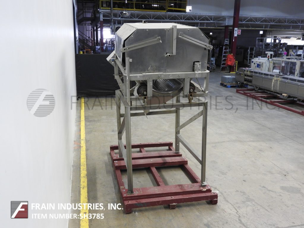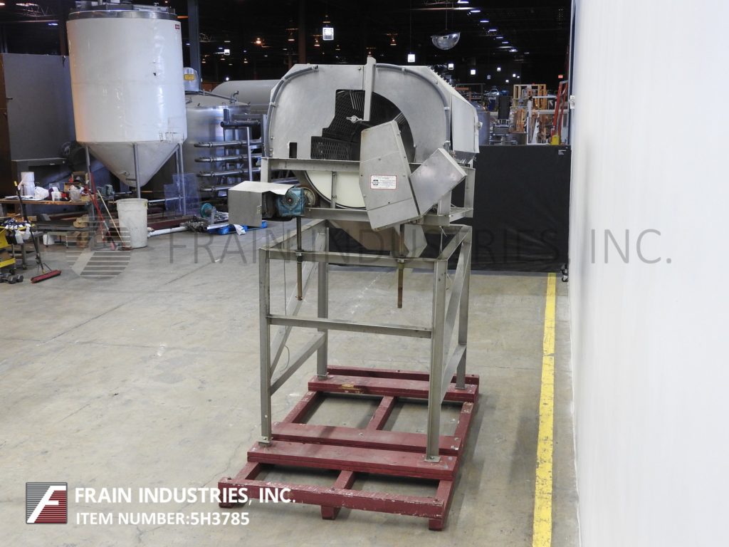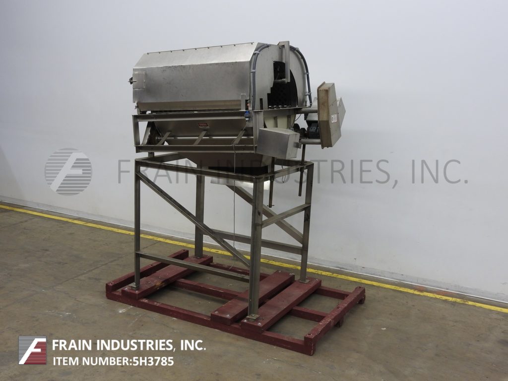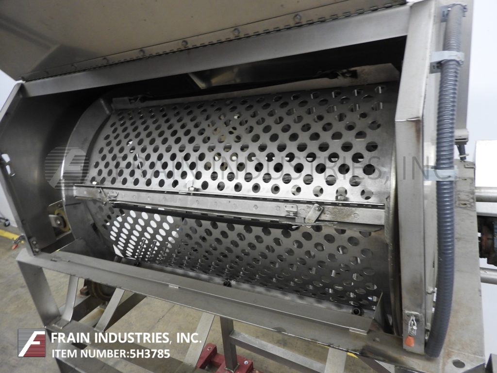 返回所有设备法兰,不锈钢,穿孔旋转垫圈,每小时产品数量-取决于材料和应用。配备31"内径x 54"长不锈钢转鼓部分1"内径穿孔和顶部喷杆由1" NPT接头提供。安装在4腿基础框架与81“进料和63”放电。