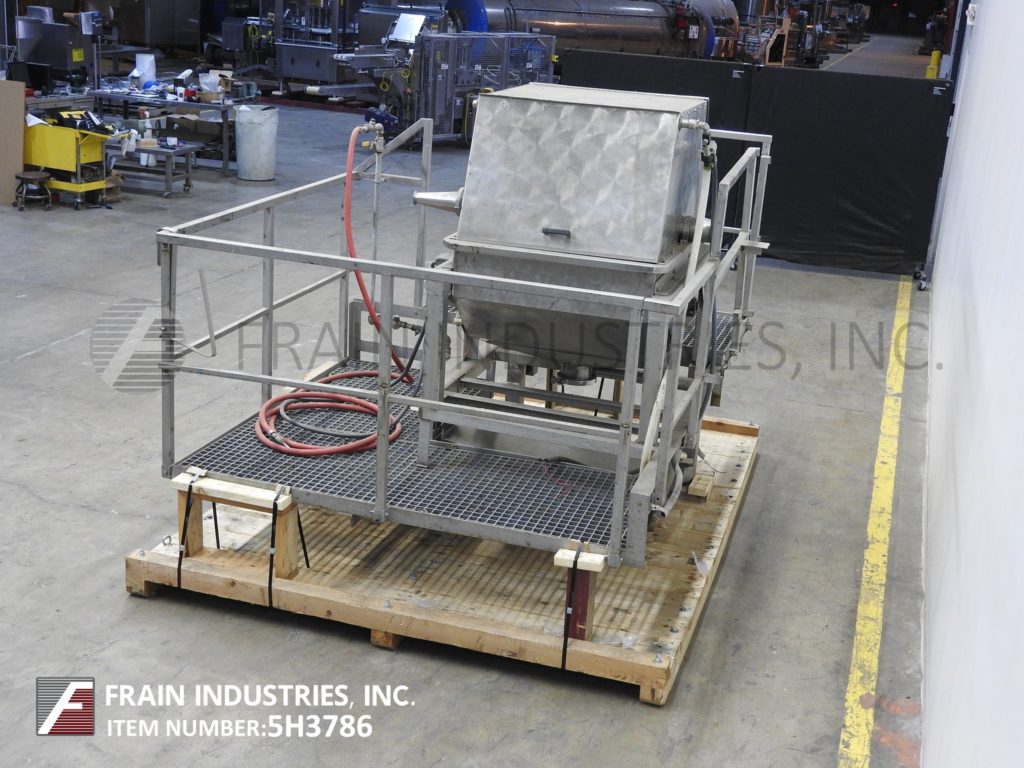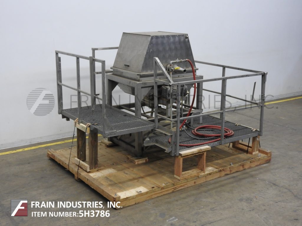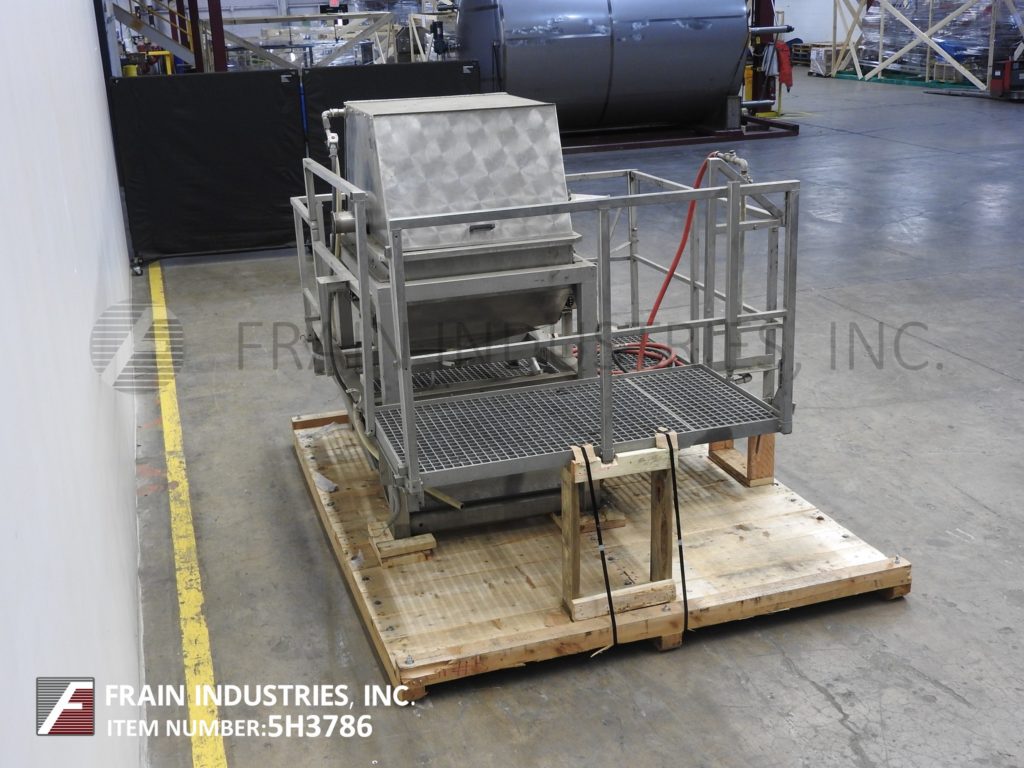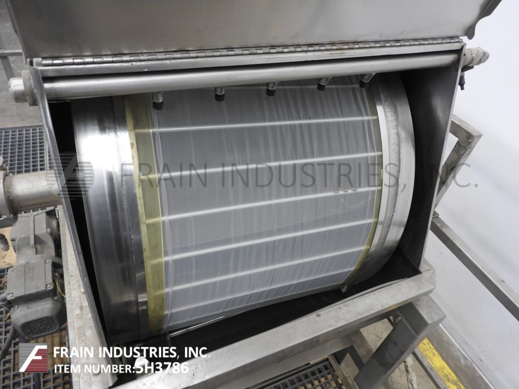 返回所有设备Franken,不锈钢,旋转脱水筛,每小时产品量-取决于材料和应用。配备36“内径x 31”长的不锈钢转鼓,带脱水滤网和翻盖,转鼓入口和出口高度为54”,支架上有不锈钢槽。侧底三夹式放电,外径为2½英寸,内径为2英寸,离地间隙为27英寸。安装在(4)支腿基架上。
