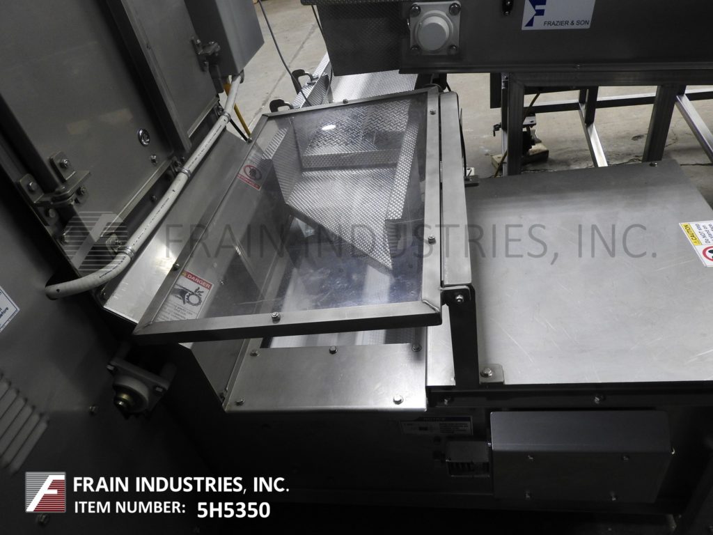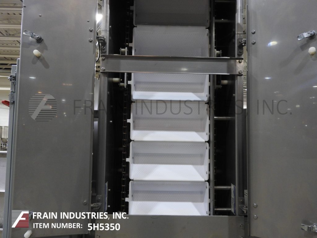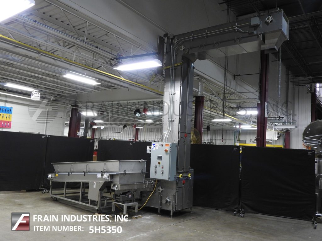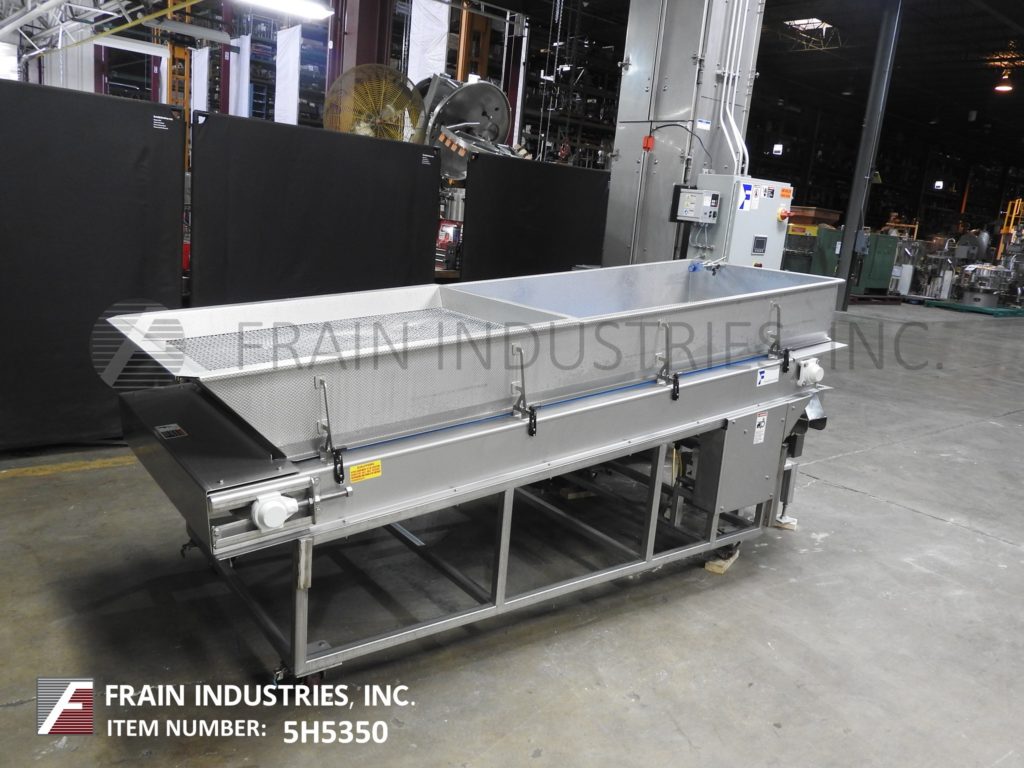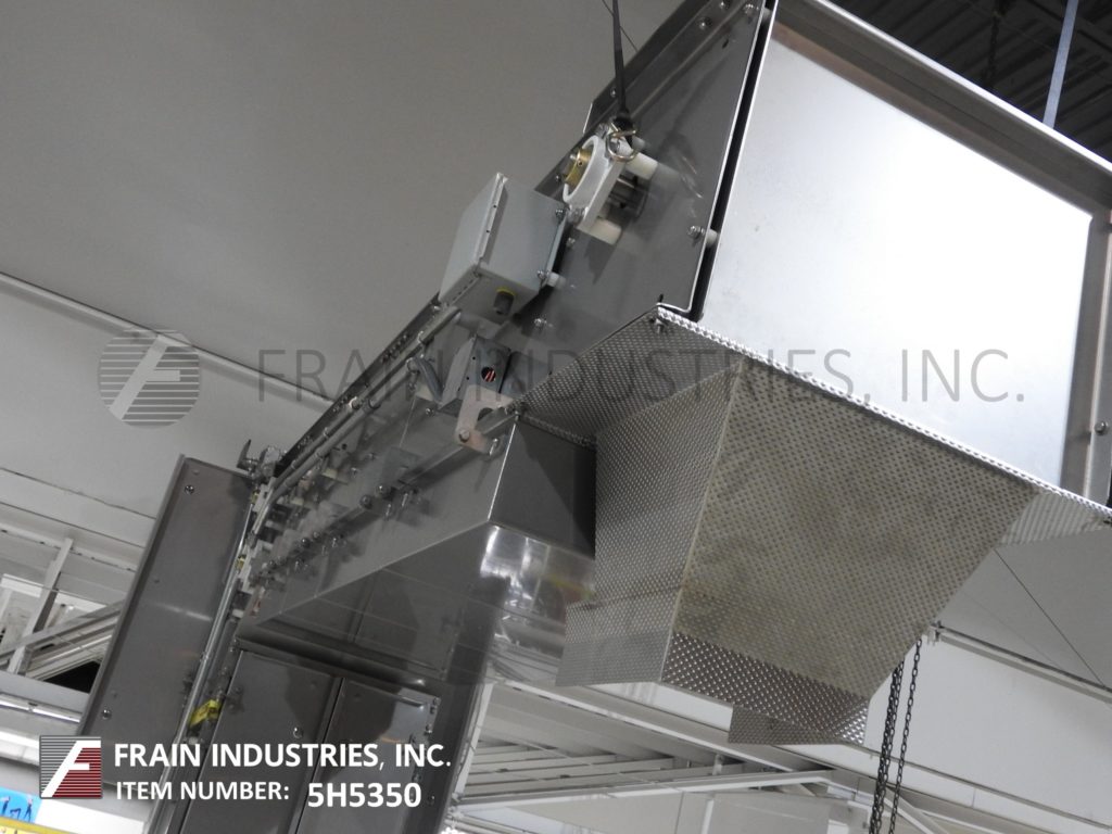 返回所有设备Frazier&Son“Z”风格模型C-WD,不锈钢,封闭,擦拭,铲斗电梯,产品饲料输送系统额定高达45英尺的皮带速度和8.3立方英尺的产品每分钟或每小时500立方英尺的产品,基于75%的可用体积的产品运行。不锈钢封闭式框架结构。配备12“x 14”产品负载区域的饲料高度有24英寸的(84)型号CBT-2,14-1 / 2“长x 7”宽x 3-1 / 2“深,凹陷不透明白色聚碳酸酯产品带63“长卧式楼层的铲斗”垂直升力,到98“顶部水平顶部运行,配备163”产品放电高度和互锁安全门。控制面板具有带腰带和馈线速度控制拨盘的A / B PanelView触控垫控制器,然后启动,停止,e-stop按钮。安装在(4)高度可调节腿上。