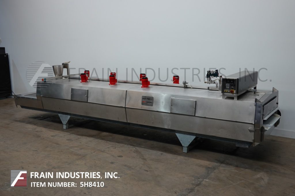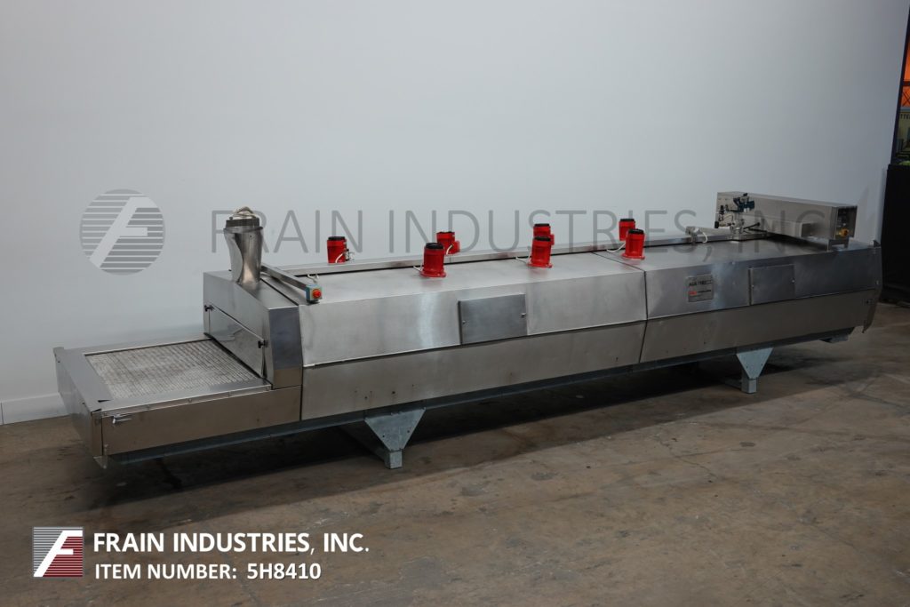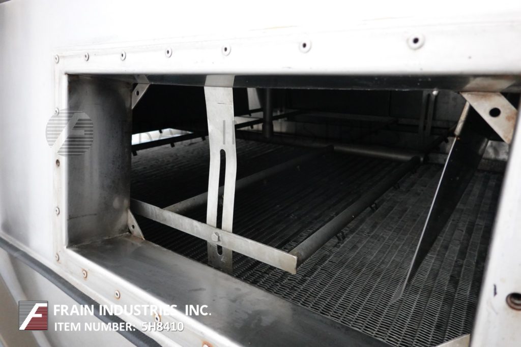 返回所有设备Frigoscandia型号AGA,在线,不锈钢,低温,氮气,带冷冻隧道温度和每小时的产品数量-取决于材料,应用和机器配置。配备47“宽x 8“高aperature x 250“长不锈钢液氮冻结室提供封面和47“宽x 286“长40不锈钢网输送带”在饲料和排放高度,用氮气冻结区和喷嘴,(7)顶部安装turbulation循环风扇,喷淋头,排气歧管和温度探头。控制面板有温度和冻结时间,疏散和带速度控制器与e-stop。安装在不锈钢(4)腿框架上。连续式在线带冷冻机设计温和的产品和最小的产品重量损失在冻结期间。