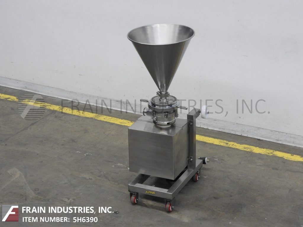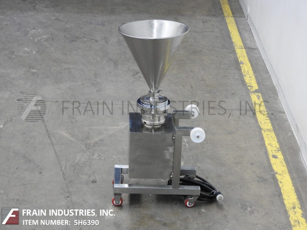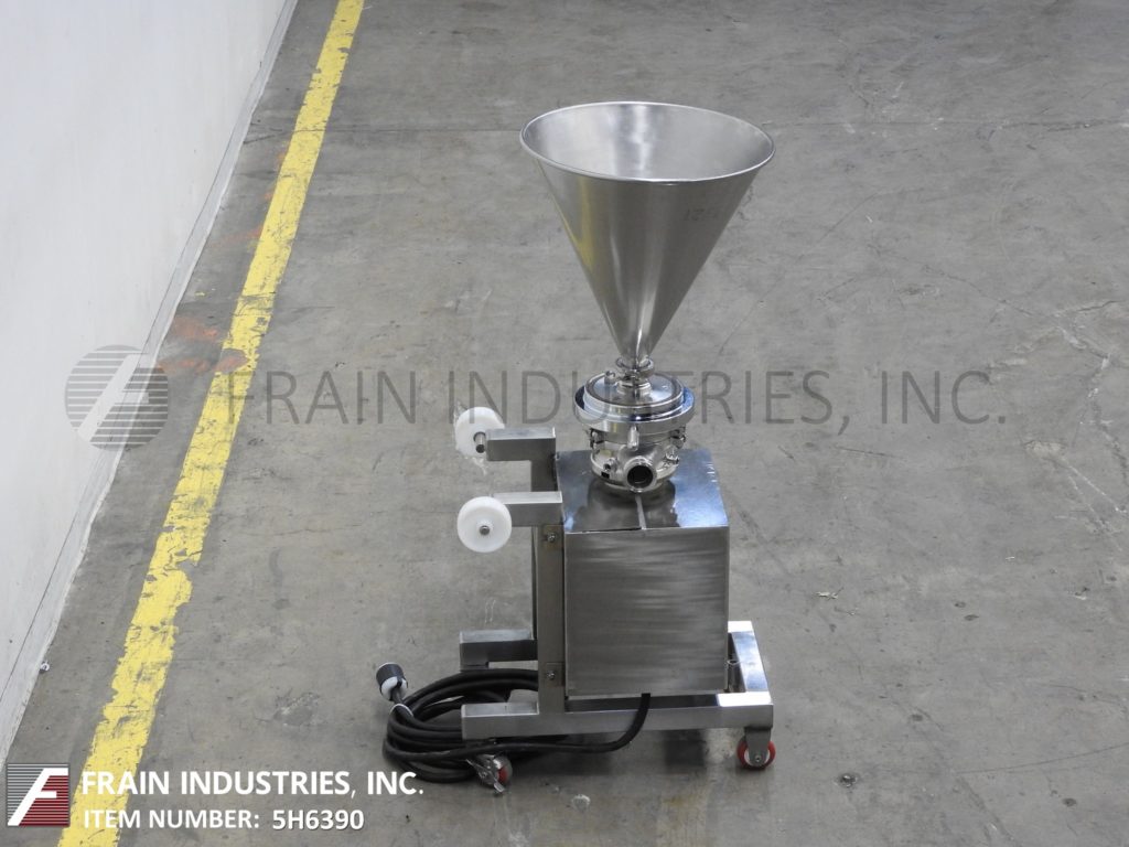 返回所有设备FRYMA Model MZ110,不锈钢,胶体磨机,生产率从300至3000升每小时的产品 - 取决于材料和应用。配有17-1 / 4“ID X 21”深不锈钢,连接产品料斗,带6“OD转子/定子和3”ID和2-1 / 2“OD卫生侧端口,基本电机驱动。安装在26”X 18“带脚轮的不锈钢基座。如果需要,磨机主要用于液体液体液体液体到高粘性产品,不同的铣削套。它们主要用于化学工业以及食品生产。