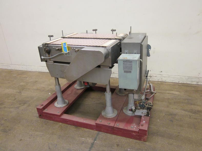 3'L x 28“W桌面,蓄能器,具有(2)28”L X 12“W侧输送机和(1)2'L x 3 1/4”W中央输送机。配备开始/停止慢跑开关。单位可调节高度腿。最后用于制药操作。OAD:46“l x 40”w x 46“h