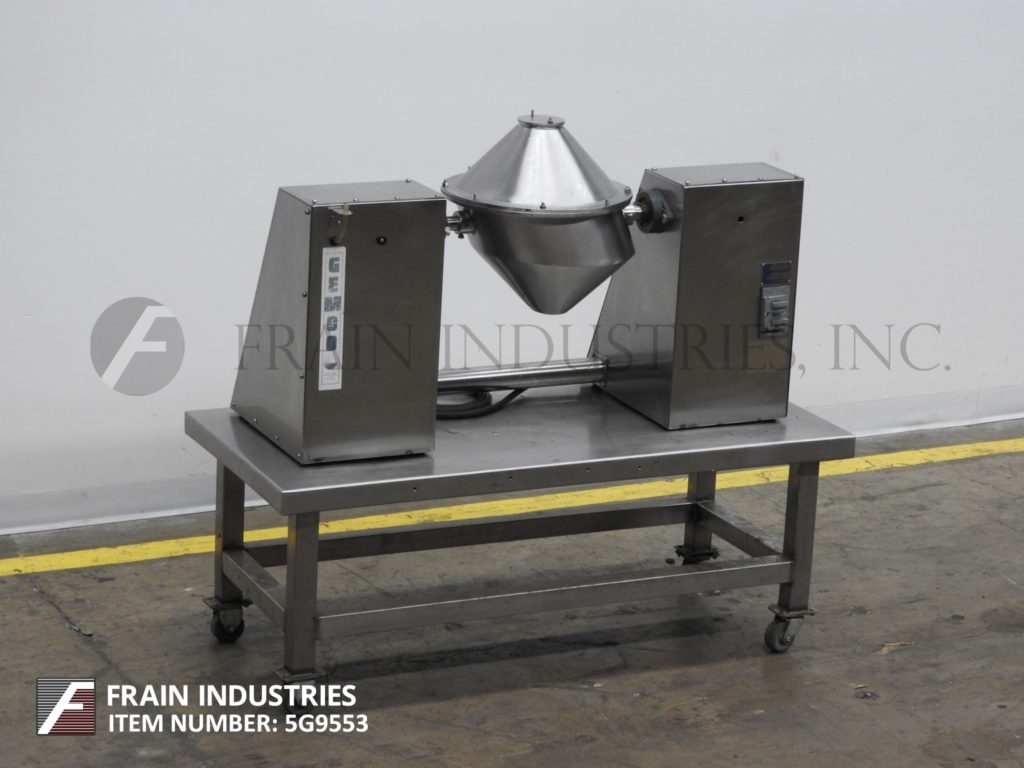 返回所有设备Gemco, 10夸脱的工作能力,全不锈钢,双锥搅拌机每小时的产品磅数-取决于材料,应用和机器配置。混合室尺寸:16英寸长度;14“直径;(2) 6”高锥4”直壁;从地板到中心轴的距离为19英寸。配备(1)3½”ID终端产品端口与螺栓下盖和10½”表间隙,液体固体棒和摆动直径18”。控制面板有混合器和液体固体棒的开/关开关。安装在不锈钢底座上。