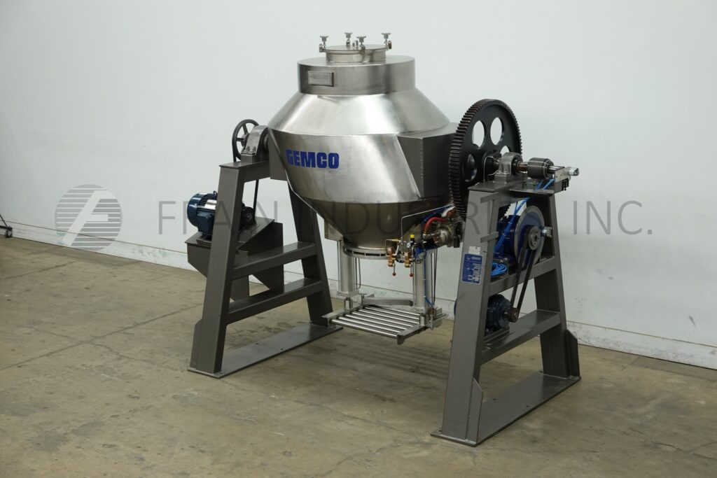 回所有设备Gemco 30FT3双网格吸尘器316不锈钢接触部件,每小时产品磅数-视物料应用而定最大素密度55磅/ft3船尺寸:55直径x20平面14下深层和24下深锥体shell驱动器71f2配上205OD顶端端口并加封装加固条调用器 由20HP驱动挂在不锈钢架上