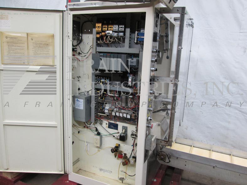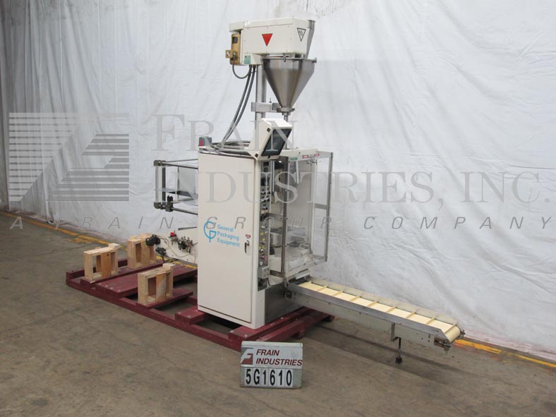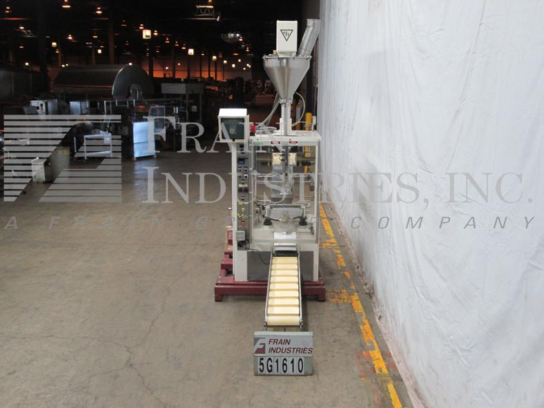 返回所有设备通用型70AC,自动,间歇运动,立式,成型,填充和封口机额定每分钟10到60袋-取决于材料和应用。袋尺寸范围:1.25"至8"宽度;2.5"至10"长度与适当的更换部件。配备单头全填充螺旋填料,1.5英尺³不锈钢产品料斗与气体冲洗,18“长× 2.5”宽填充管,12“长搭接密封条,9“宽热锯齿刀密封颚,薄膜注册,和11“宽× 15”长的产品排放溜槽与整理。此外,功能联锁Lexan保护,AB PLC,速度控制,和前/后热条控制。上次在咖啡应用程序中运行。