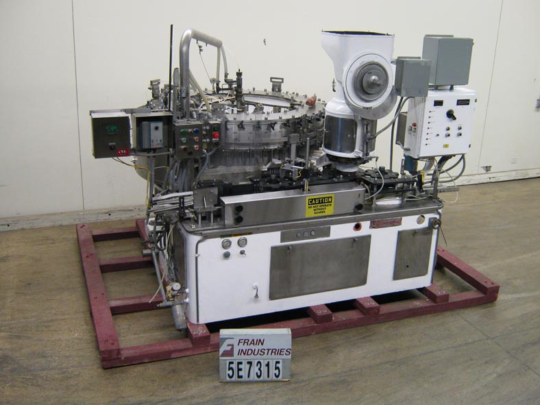 返回所有设备单块40头填充物和8头冠器,每分钟能够速度为50至400瓶 - 依赖材料和应用。集装箱尺寸范围:直径2“至4-7 / 8”;高度为5-1 / 2至14英寸。68“直径转桌与(40)3/8”OD / 1/4“ID喷嘴设置在5”中心,底部填充,钟形,112“长x 3-1 / 4”宽不锈钢产品输送机蠕虫螺丝到星轮进给和放电。8头旋转冠帽,带有溢出滴灌的架空产品进料系统,没有容器/无填充和CIP环。安装在重型框架上。最后运行12盎司碳酸饮料,带28mm冠帽。