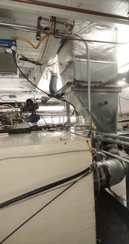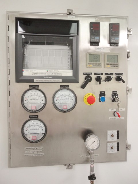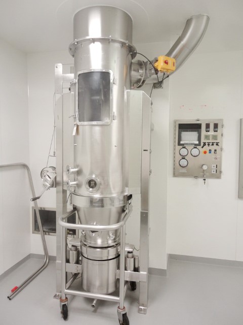 返回所有设备Glatt型号WST15C,不锈钢,通过墙设计,(3)段流化床干燥机,15kg, 33磅,15升批量工作能力和高达1300 cfm与160,000 BTU和产品每小时的体积-取决于材料和应用。配备18“OD x 52“长不锈钢膨胀室顶部有24“OD法兰通过天花板港口和12“OD法兰水平板面救援端口与蝴蝶排气阀和半“OD法兰3”ID看到港口和(2)5“OD法兰端口覆盖19”长x 14”宽边看到通过检修门和40公斤最大重量手摇曲柄柱提升机。18"外径x 18"深的中间部分干燥碗5-1/2"外径法兰,3" ID观察端口和(4)带脚轮的腿推车。18"外径x 18"长底部倾倒下过渡卸料段与12"外径法兰水平底部侧空气进口端口。和1“外径底部排水。32英寸长x 29英寸宽x 96英寸高进口空气静压箱接收从上面安装的气候控制空气处理系统与预滤网,除湿器,预热器,加湿器,最终加热器和HEPA过滤器流体床干燥机。控制面板与进口空气温度和音量设置点控制器定时器,空气,过滤器碗和手动振铃开关与主控,风扇和排气控制,AP产品碗,空气过滤器和空气准备单元megnehelic水仪表与图表记录仪。远程空气处理和风扇系统,更安静,更清洁,运行安全。安装在不锈钢框架与脚轮和调平腿。