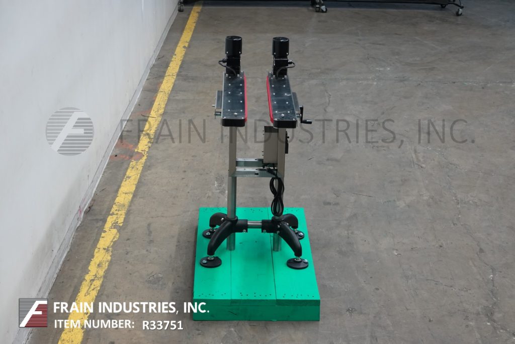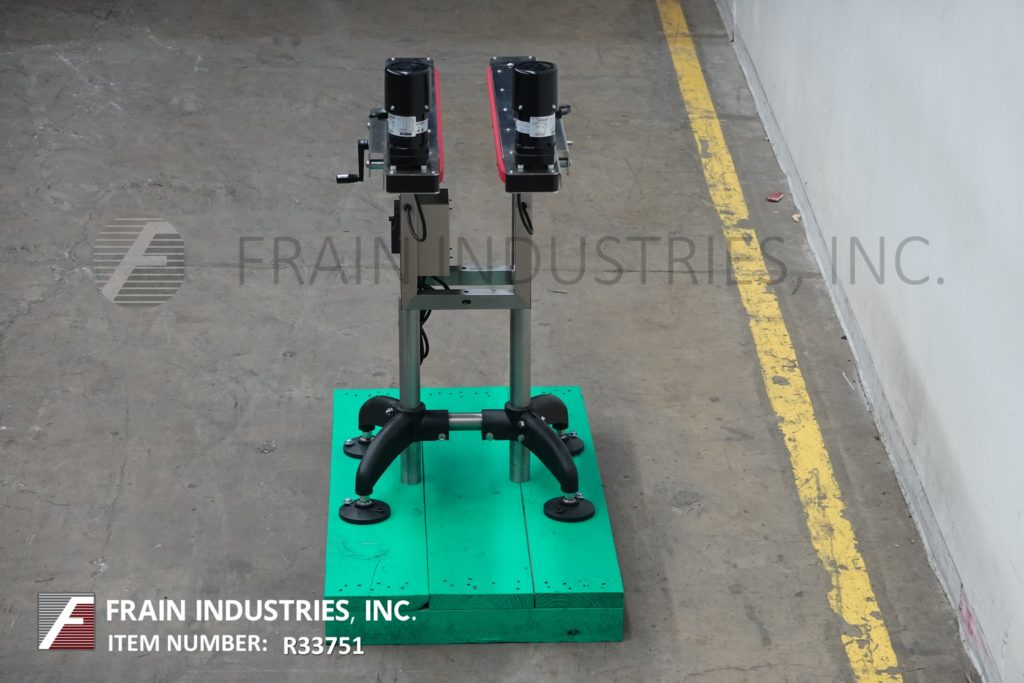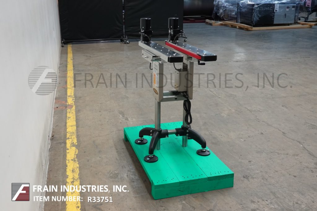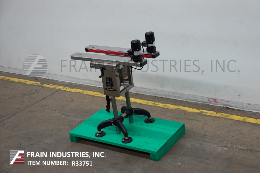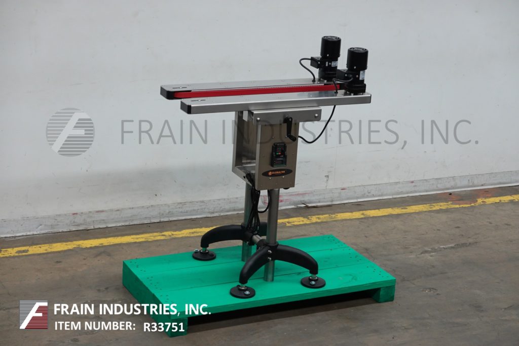 回到所有设备GlobalTek不锈钢,无底带传送输送机,每分钟产品数量 - 取决于材料和应用。配备单张32“长x 1”宽橡胶侧产品夹具带,具有独立植物,驱动各侧,可变速度控制和手动曲柄调整,以处理直径¼“至7½”的容器。安装高度可调底座。非常适用于将产品从一台机器转移到另一台机器,通过倒入的输送系统和底部编码,