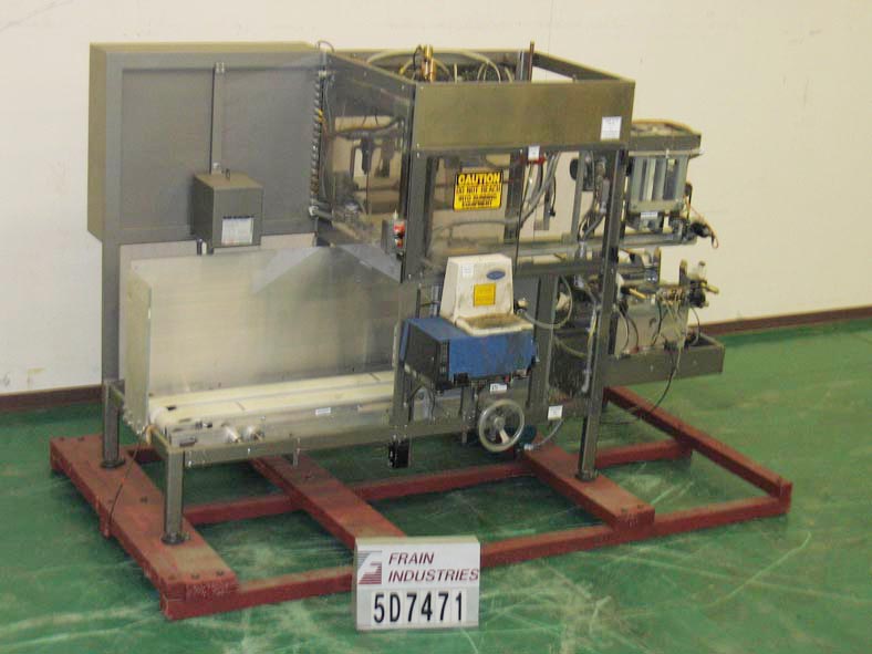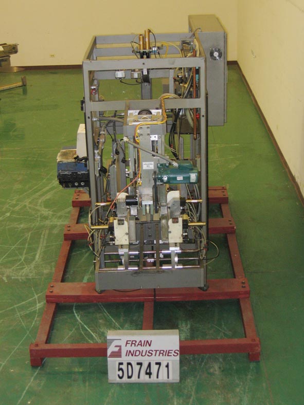 返回所有设备全自动托盘前者和胶合器能够每分钟最多12个托盘,可调节托盘(13 1/2“ - 22 1/4”)L(9 1/2“ - 18”)W至6“H。Features a 24"H vertical magazine for blanks (12" – 30")L by (15" – 24")W in a two station side indexing set up to allow a new stack of blanks to be loaded while the current stack is being used. Equipped with a Nordson 2304 hot-melt glue system, a 32" high discharge, a four cup vacuum blank pick & place, and and AEG Modicon PC-E984-245 controller. Set-up for quick changeover. Mounted on four height adjustable feet.