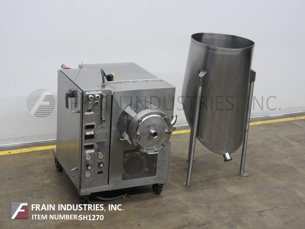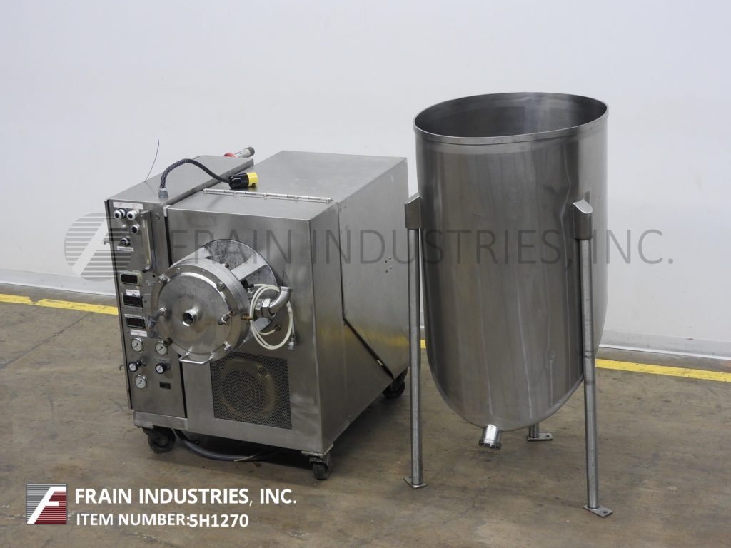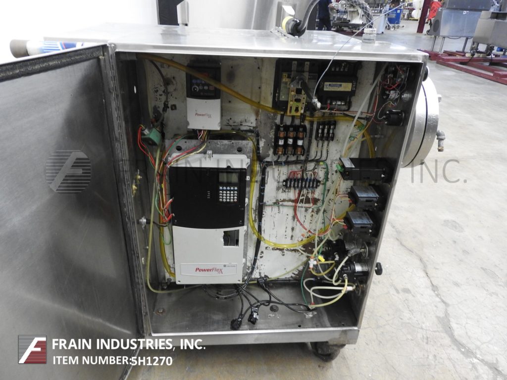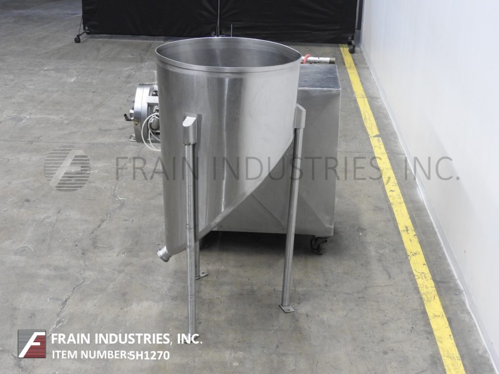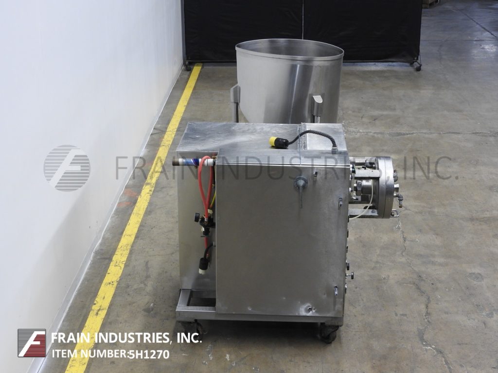 返回所有设备良好的紧凑,高剪切,连续,不锈钢,转子,定子,曝气,搅拌机每小时的速度-取决于材料和应用。配备双墙混合室cooliant循环16“OD / 13”ID金字塔形状的搅拌头raidial流盘组成的高剪切作用前后转子和定子2 - 1/2“OD螺纹中心成品出口和卫生密封传动轴额定150 psi标准CM35 450 psi。控制面板有转子/混合机和泵供应速度控制,转子和泵停止,空气供应,和带流量计的背压表。安装在不锈钢通用底座框架上。连续搅拌机可使蛋糕糊、奶油馅、棉花糖、糖霜、鲜奶油、黄油和其他许多东西通气。