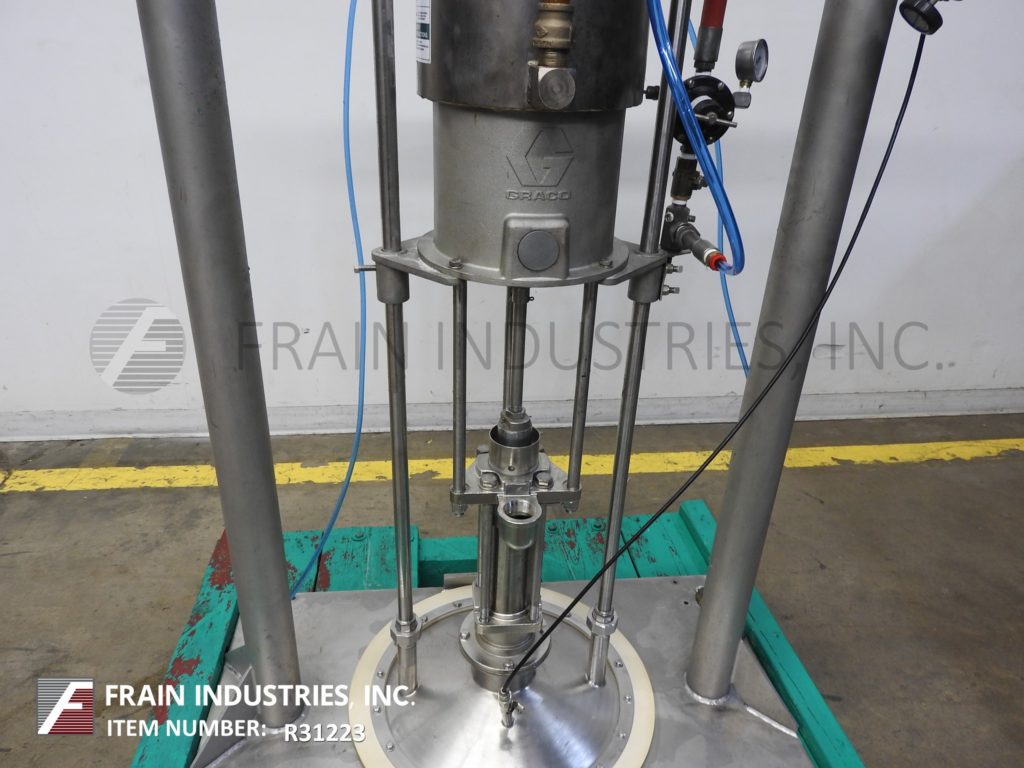 返回所有设备Graco, 234014型,Bulldog系列,10:1比,55加仑起动活塞,容积泵,额定从1到23升或1到6加仑每分钟-取决于材料和应用。最大流体工作压力:1000 psi (69 bar)。最大空气输入压力:100psi (7 bar),可处理粘度高达1,000,000 cps和温度高达150℉。所有不锈钢收缩部件。配备21"柱塞板单气动活塞柱塞,2"和1-1/2"螺纹ID流体端口。安装在42“x 24”平台式底座上。