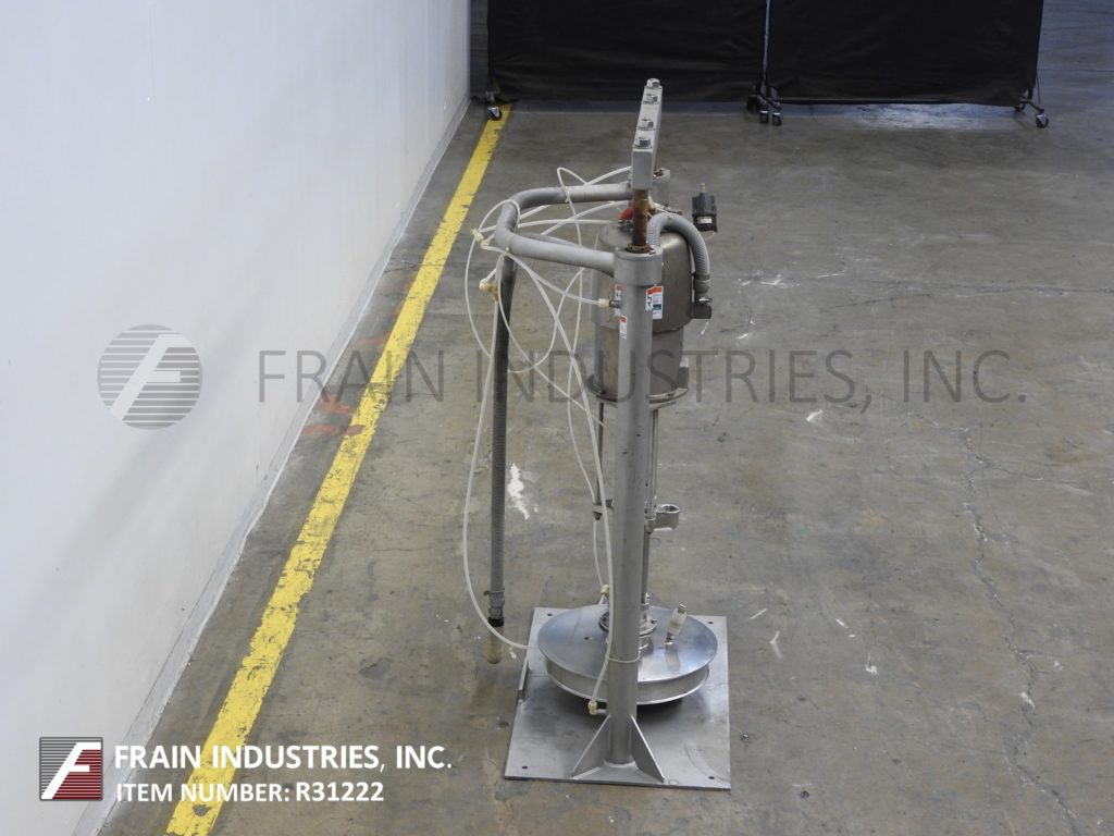 返回所有设备Graco,Model 949444,斗牛犬系列,10:1比例,55加仑灌注活塞,正排量泵,从1至23升或每分钟1到6加仑的速度 - 取决于材料和应用。最大流体工作压力:1000 psi(69 bar)。最大空气输入压力:100psi(7 bar),可以处理高达1,000,000个CP和温度高达150°F的粘度。配备21“RAM板,带有单个气动活塞RAM,2”和1-1 / 2“螺纹ID流体端口。安装在42”X 24“平台式底座上。