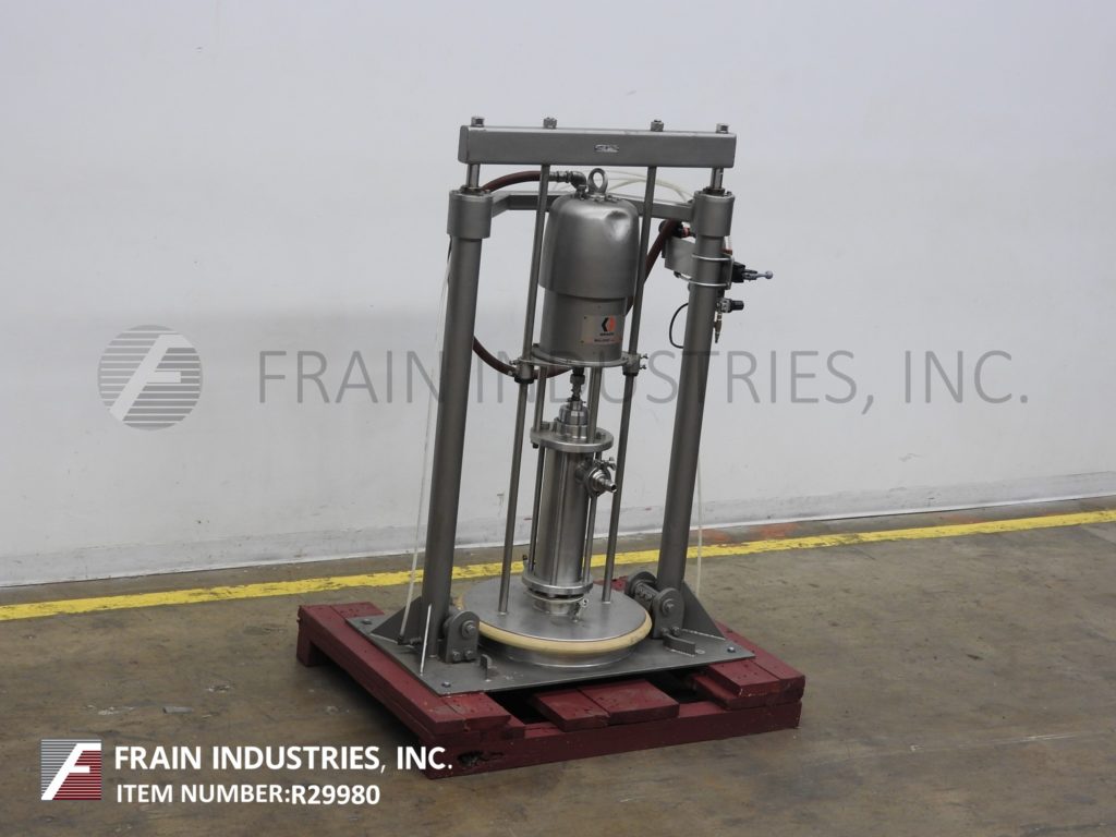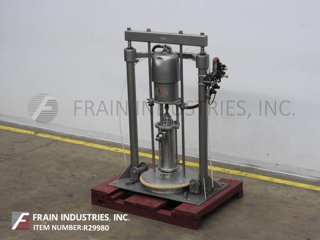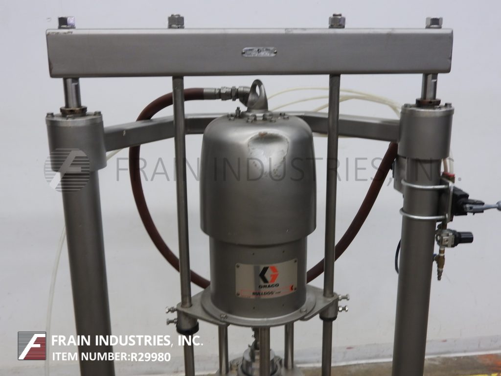 返回所有设备Graco, 954165型,Bulldog空气泵,启动活塞排量,38:1比设置额定每分钟90加仑-取决于材料和应用。最大流体工作压力:3,800 psi (262 bar)。最大空气输入压力:90psi (6.2 bar),可处理高达250000 cps的粘度。配置不锈钢接触部件,21"闸板与单气动活塞闸板,2¾"外径1-1/ 2"内径i型管线流体排放。安装在油漆底架上。