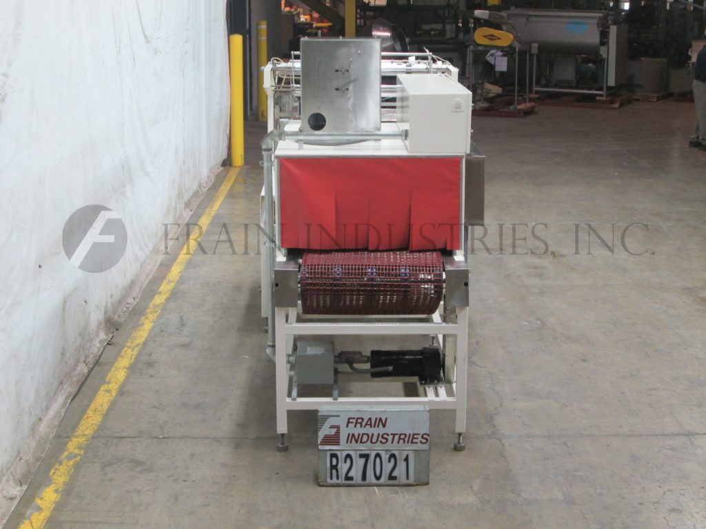 Tunnel: Great Lakes Model P123060, automatic, shrink tunnel rated from 1 to 85 feet per minute with number of product – depending on materials and application. Equipped with 30" Wide x 10" High aperture x 60" Long single zone shrink chamber, 84" long x 28" wide flexlink product conveyor. Control panel with push button start/stop for conveyor and tunnel, temperature controller, variable air velocity and conveyor speed control dials. Mounted on (4) leg base frame with an in feed and discharge range of 36" to 38".