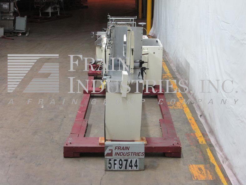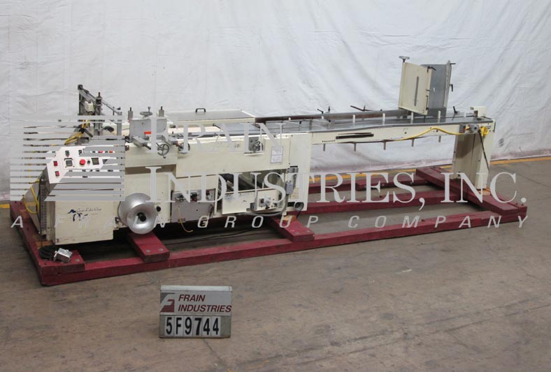 返回所有设备大湖区,TS37型,自动,连续运动,侧密封,水平流动通过包装器。产品尺寸范围:长度2"至60";宽度可达16英寸;高达6英寸的高度。配备120“长16日拖着在进料输送机”中心,3“高凸耳和调整导轨,42”长x九个半“宽皮带输送机通过密封区域,18“宽步进梁横封与12“长侧密封,修剪站和除废系统23”长x九个半”宽放电输送机。带有PLC控制器的控制面板具有启动,停止,点动,驱动速度,密封条和修剪密封控制,带有e-stop的温度计。薄膜规格:单缠绕薄膜,宽度可达37”;直径为10英寸;3“OD的核心。速度取决于材料,应用和机器配置。