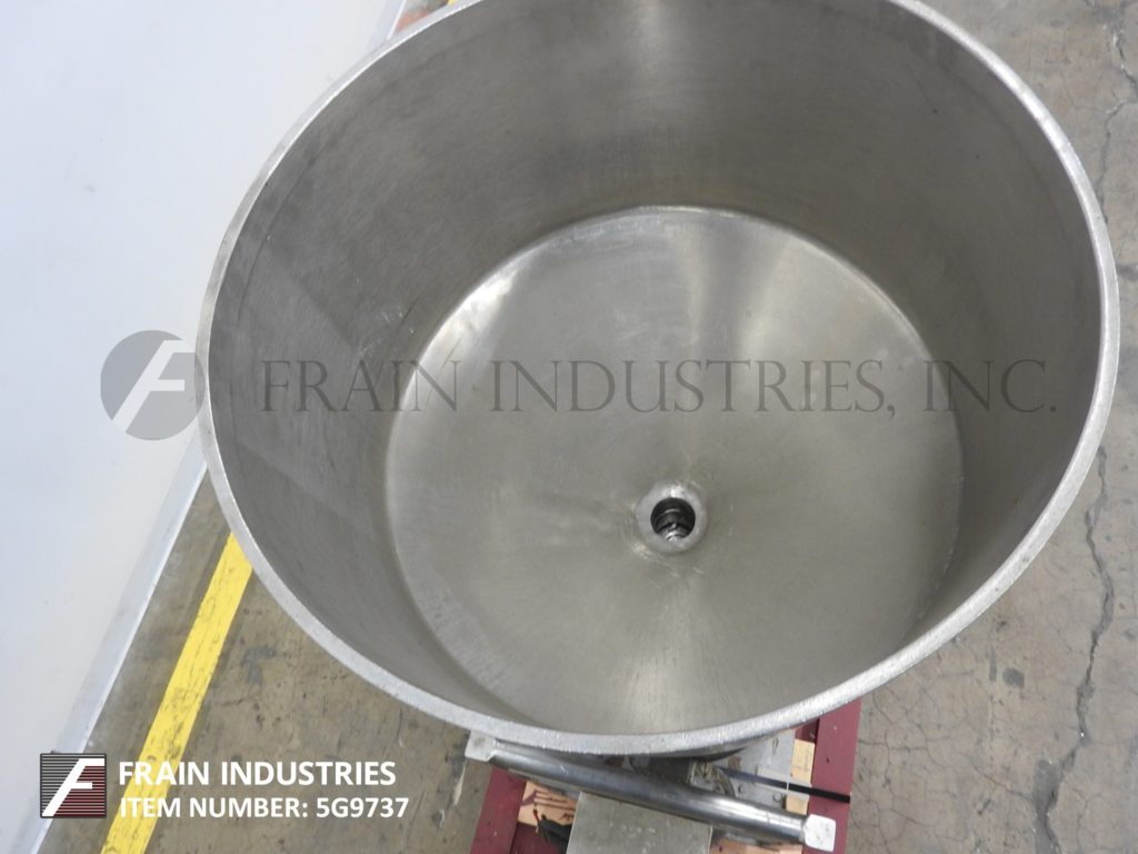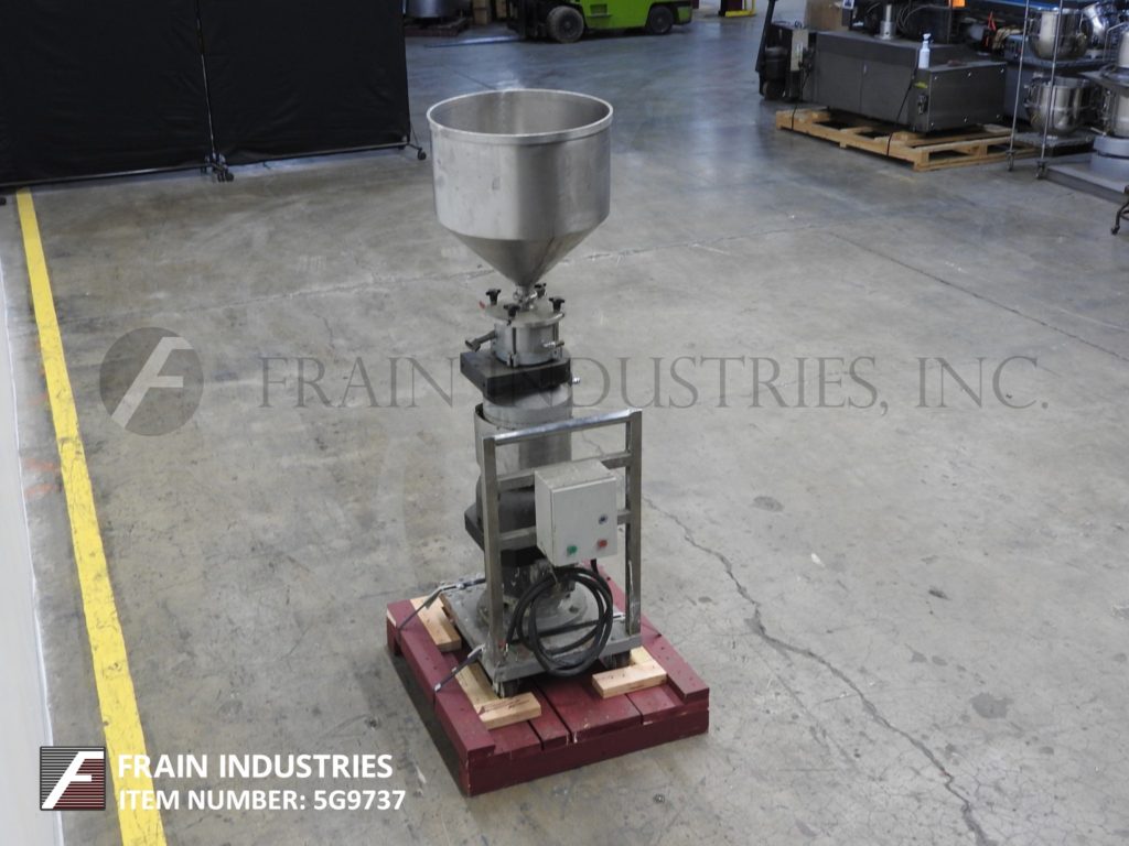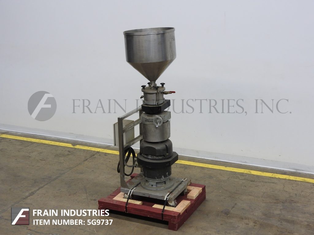 返回所有设备希腊,型号W500V,胶体磨机。取决于材料,应用和机器配置,能够在液体或液体中的液体中的液体或固体中的液体中的液体或固体中的完全分散和直接聚集 - 取决于材料,应用和机器配置。配备20“直径X 20”深(20加仑容量)不锈钢料斗,1“直径排放,具有44”地间隙。转子由10 HP驱动器供电,并安装在推车底座上。