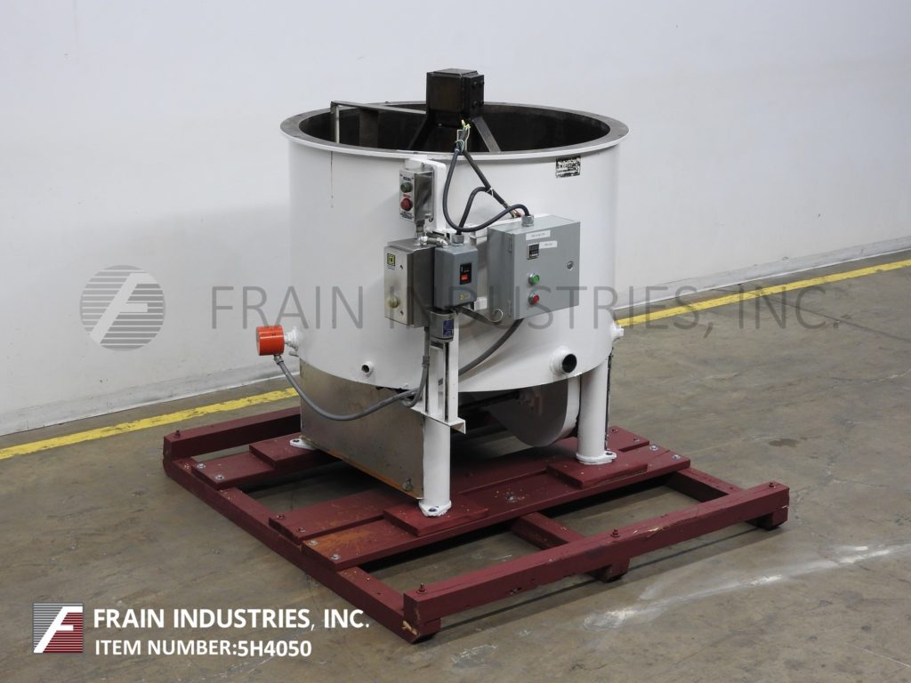 返回所有设备j。w。格里尔,2500磅,碳钢,全护套,巧克力熔化和混合罐。每小时产品的重量-取决于材料和应用。容器尺寸;50"直径x 35"直壁。配备平顶和桥式双偏置扫描搅拌,全大气夹套,侧、顶温度探头和侧温度计。侧面3½“NPT放电与22”地间隙。安装在(4)碳钢腿上。