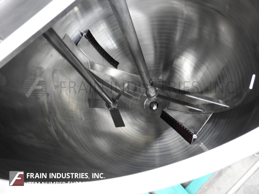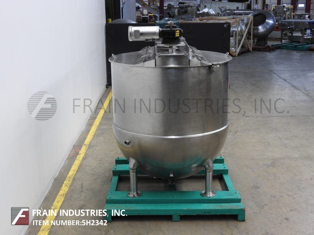 返回所有设备檐口,600加仑容量,316不锈钢,夹套双重运动水壶。船舶尺寸:60“直径x 62”深,带33英寸的直墙。配备升降盖,3个HP桥式刮膜,2个HP桥式安装16“直径支柱样式混合头,冲洗安装压力传感器和3½”OD/ 3“具有球阀的ID Tri-Clamp样式底部放电,4”接地间隙。
