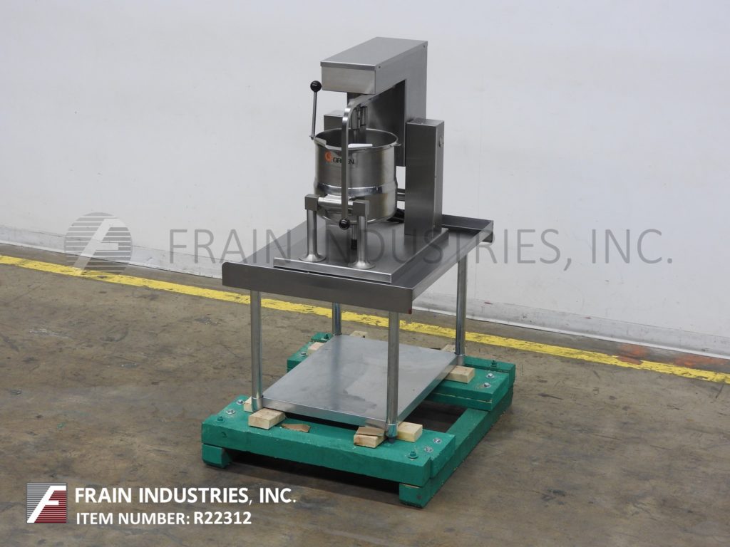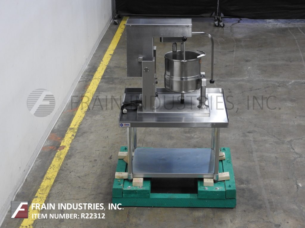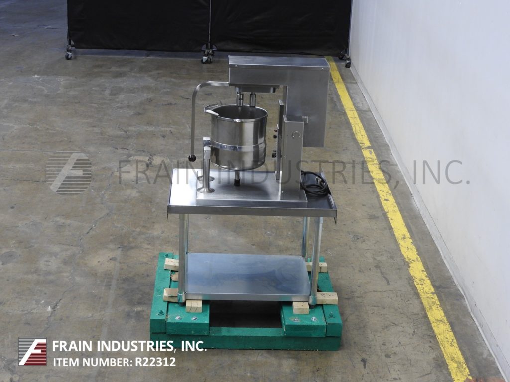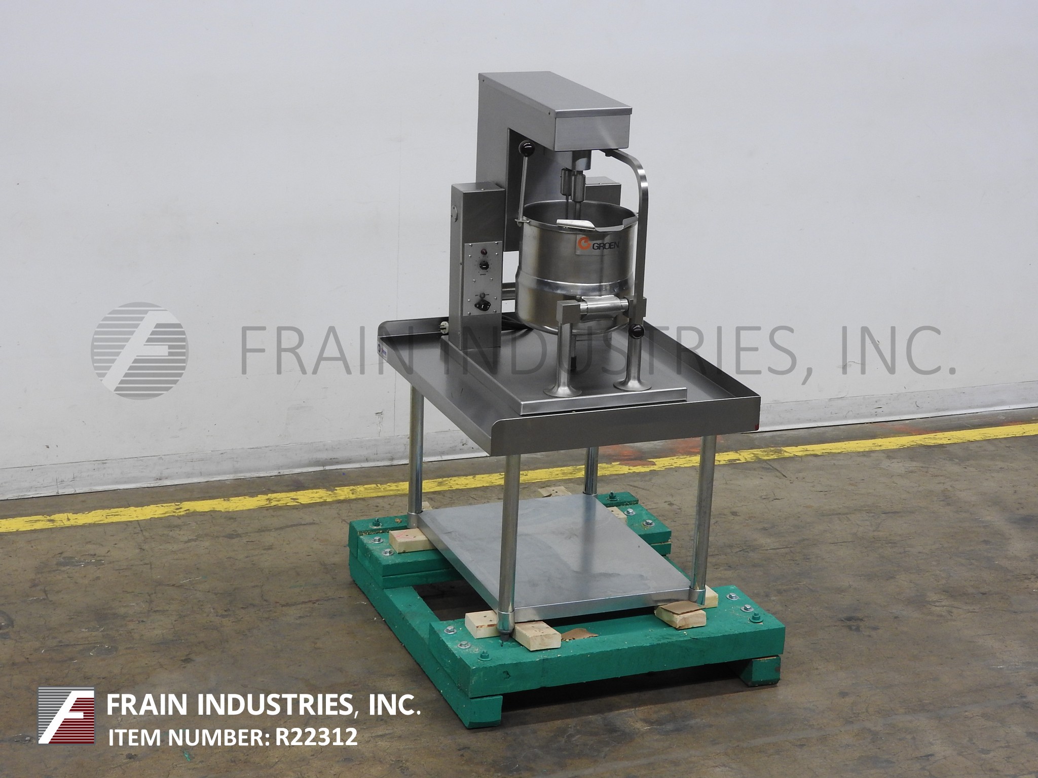 返回所有设备Groen,型号TDC/3-20, 304不锈钢,20夸脱,桌面倾斜,双运动,蒸汽夹套混合釜。配备内径12“x深度12”的产品搅拌碗,顶部安装刮面搅拌、圣诞树搅拌和侧面杠杆产品倾斜排出。搅拌具有开/关开关和变速控制。安装在36" x 30"的桌面上。